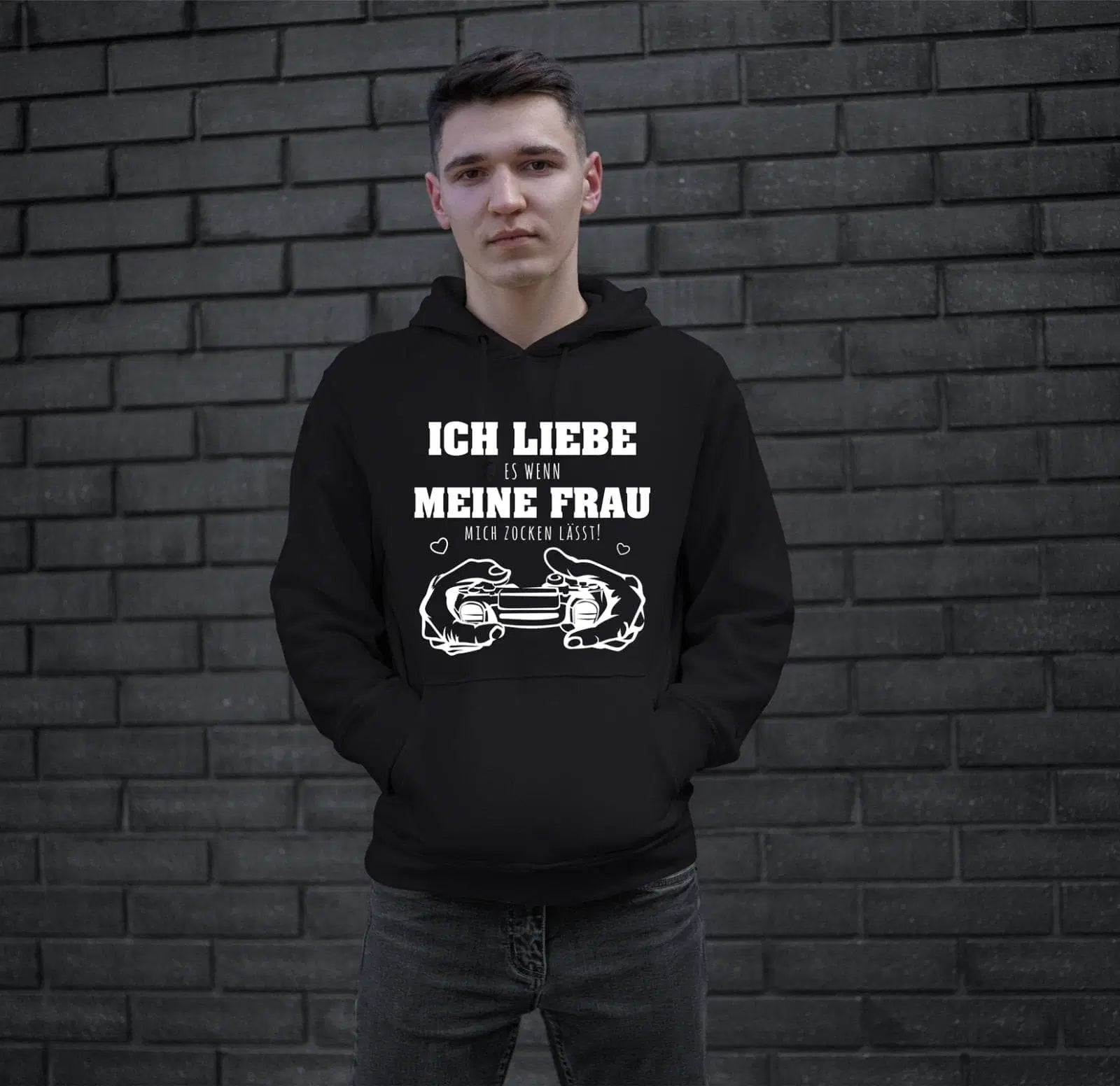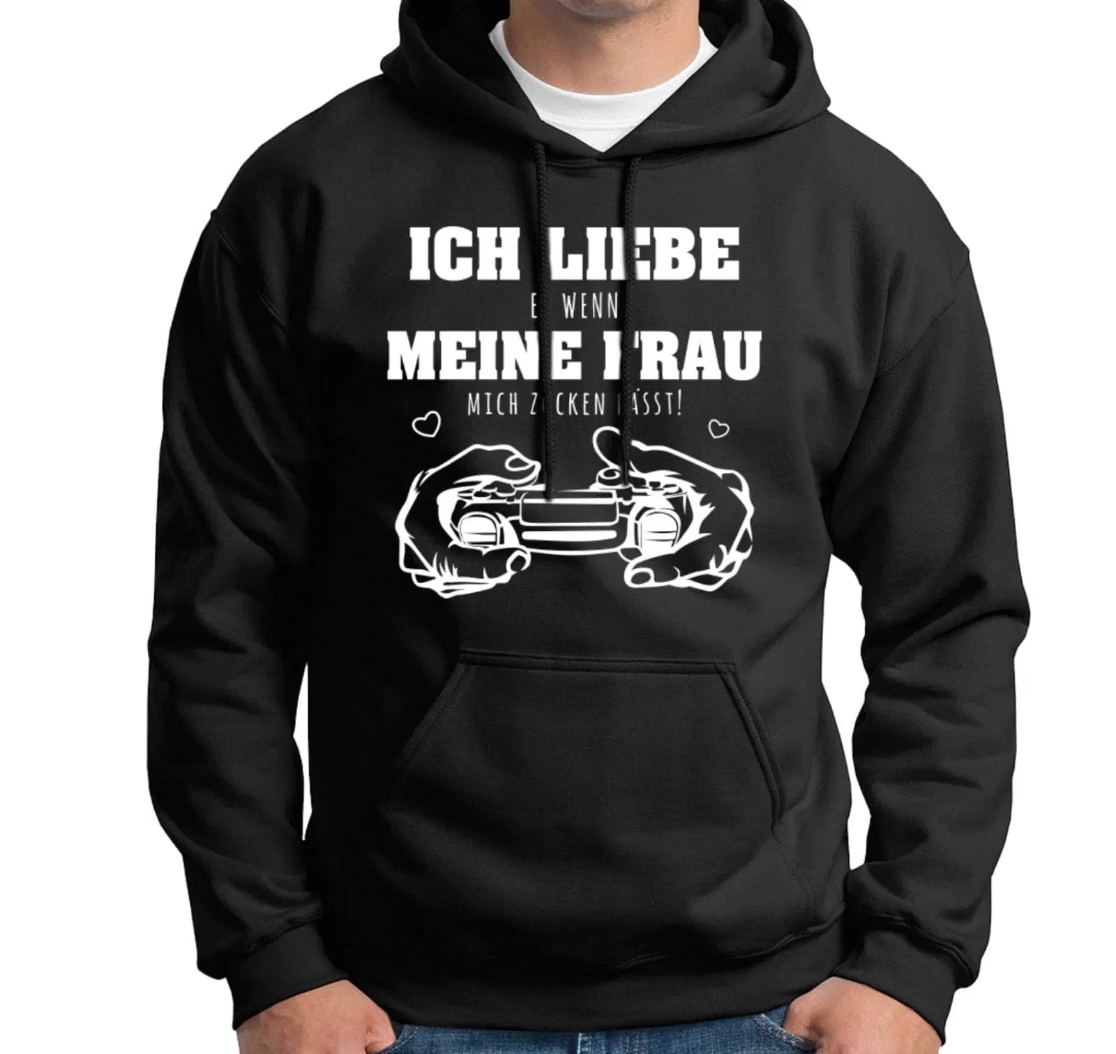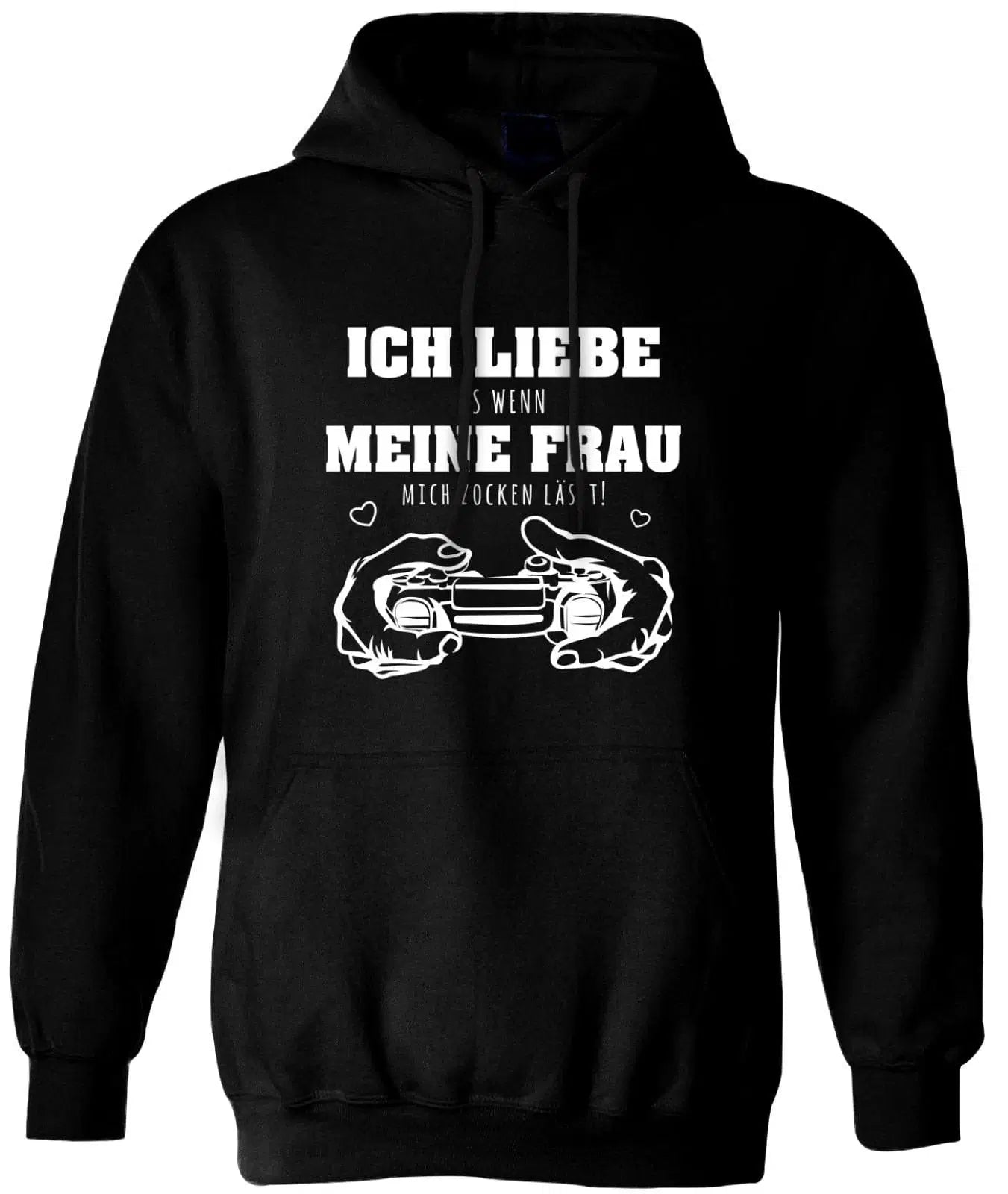 Hochwertiger Hoodie / Pullover mit Kapuze und Spruch: Ich liebe es, wenn meine Frau mich zocken lässt! 🤍 🎮