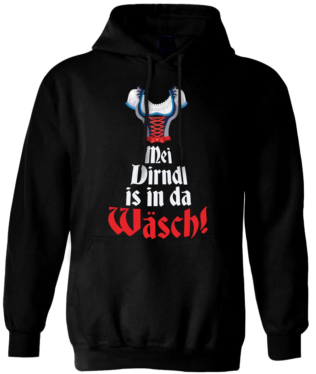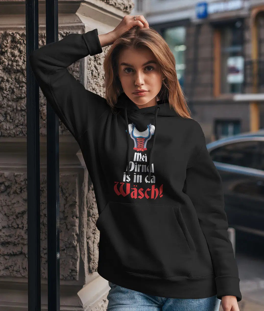Hochwertiger Hoodie / Pullover mit Kapuze und Spruch: Mei Dirndl is in da Wäsch! 👗