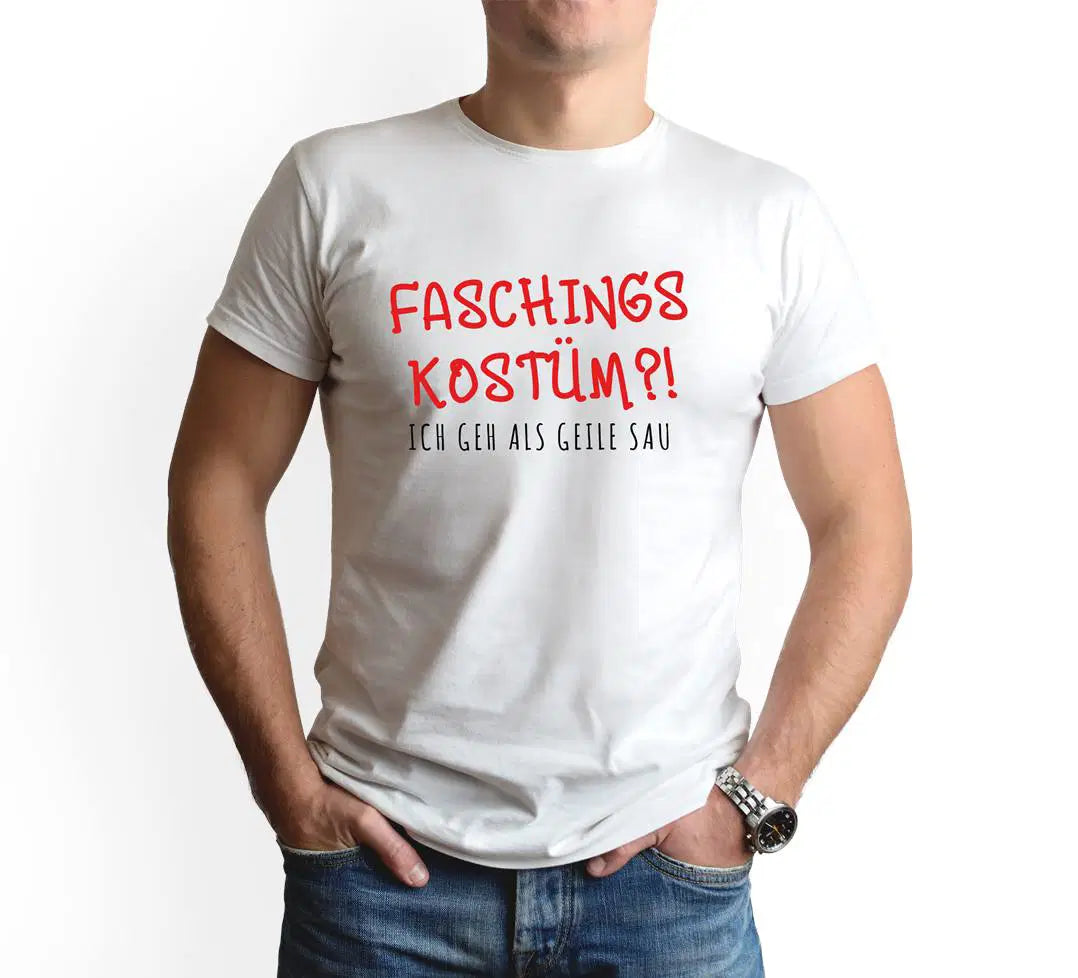 T-Shirt mit Spruch: Faschingskostüm!? Ich geh als geile Sau