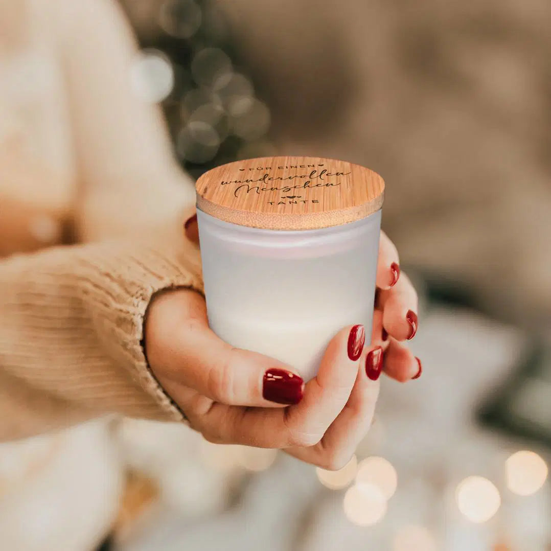 Duftkerze mit Bambusdeckel und Spruch: Für einen wundervollen Menschen ♡ Tante