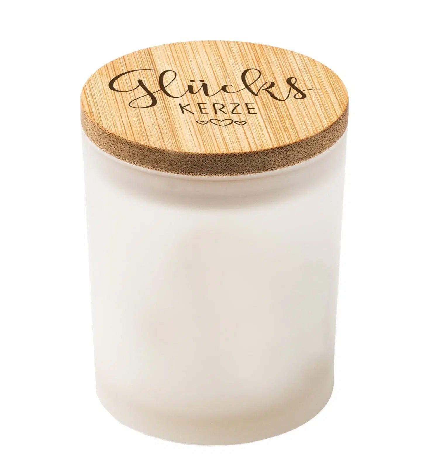 Duftkerze mit Bambusdeckel und Spruch: Glückskerze ♡
