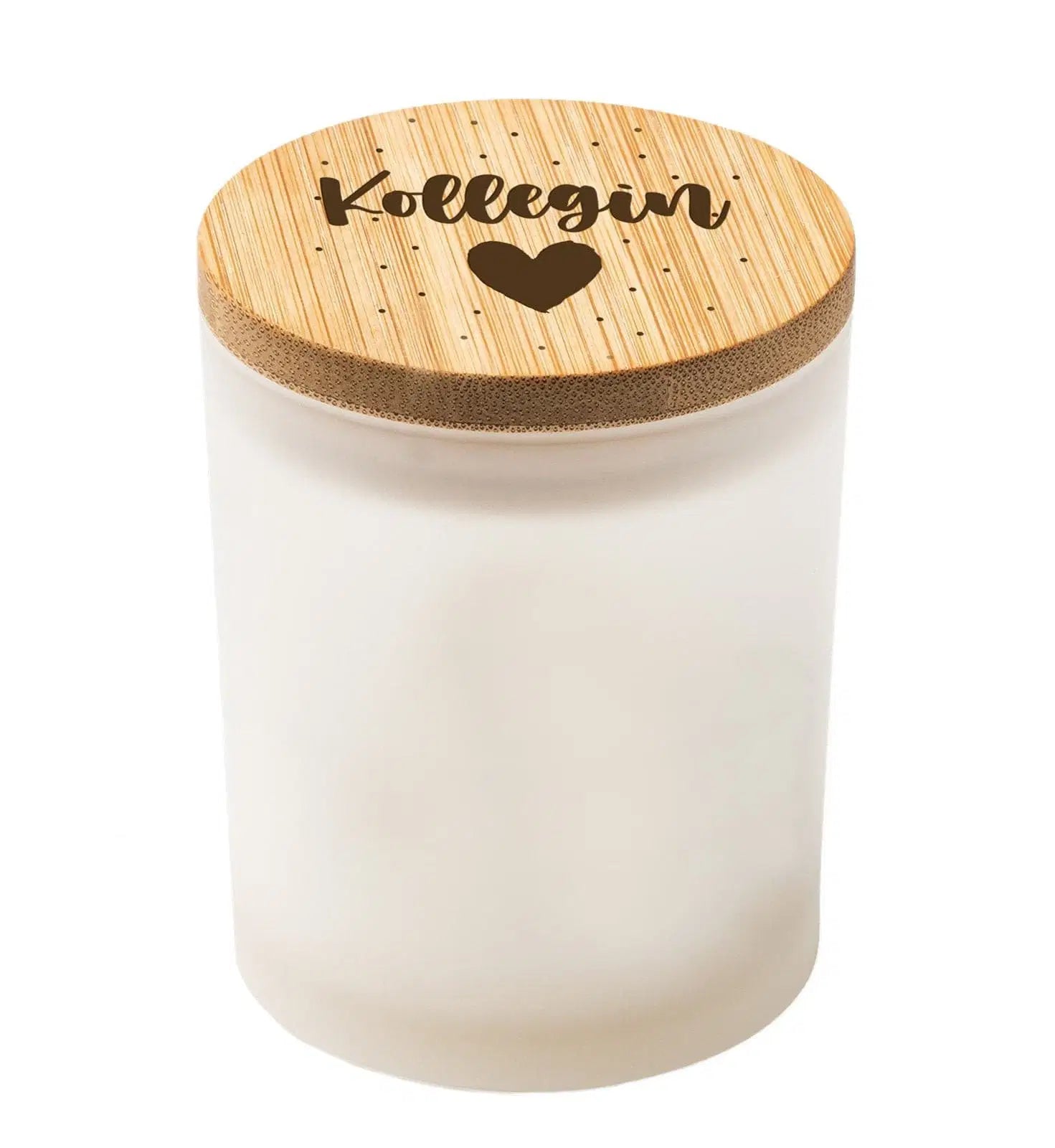 Duftkerze mit Bambusdeckel und Spruch: Kollegin ♥ mit Herz