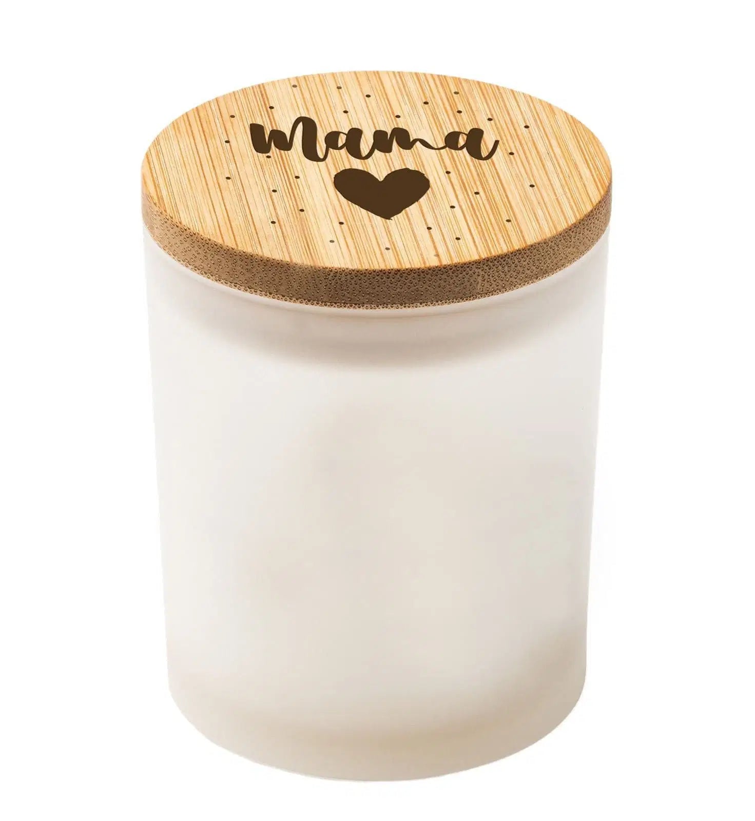 Duftkerze mit Bambusdeckel und Spruch: Mama ♥ mit Herz