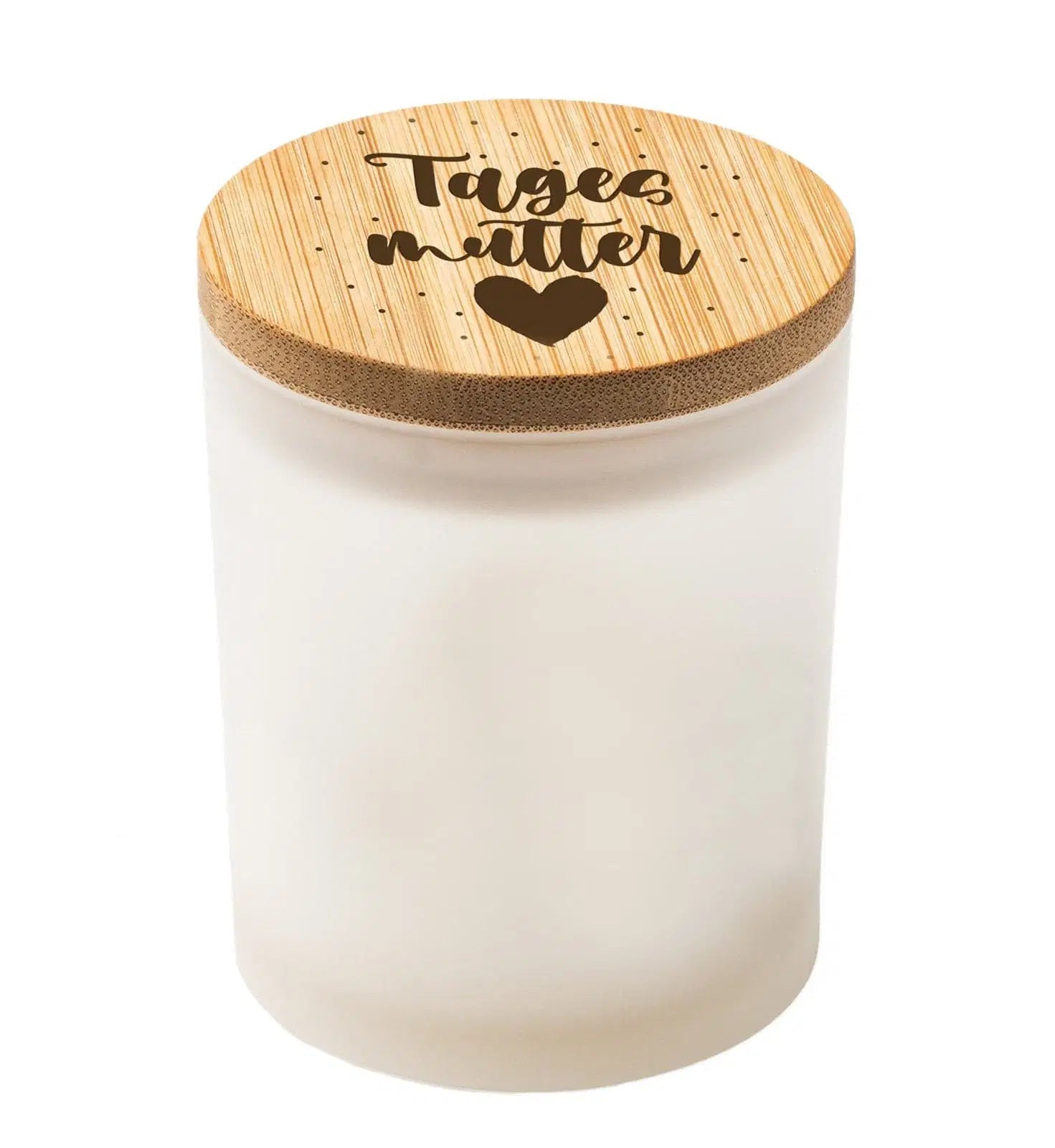 Duftkerze mit Bambusdeckel und Spruch: Tagesmutter ♥ mit Herz