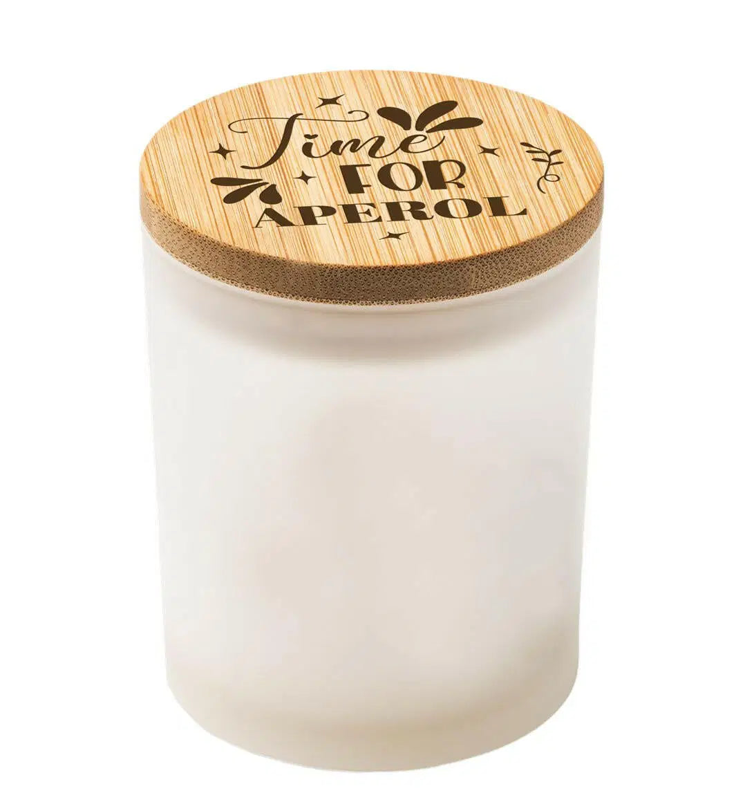 Duftkerze mit Bambusdeckel und Spruch: Time for Aperol