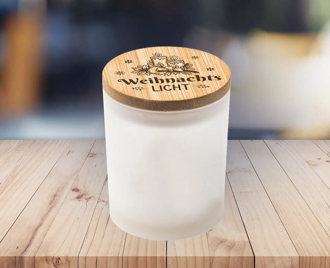 Duftkerze mit Bambusdeckel und Spruch: Weihnachtslicht 🕯️🎇