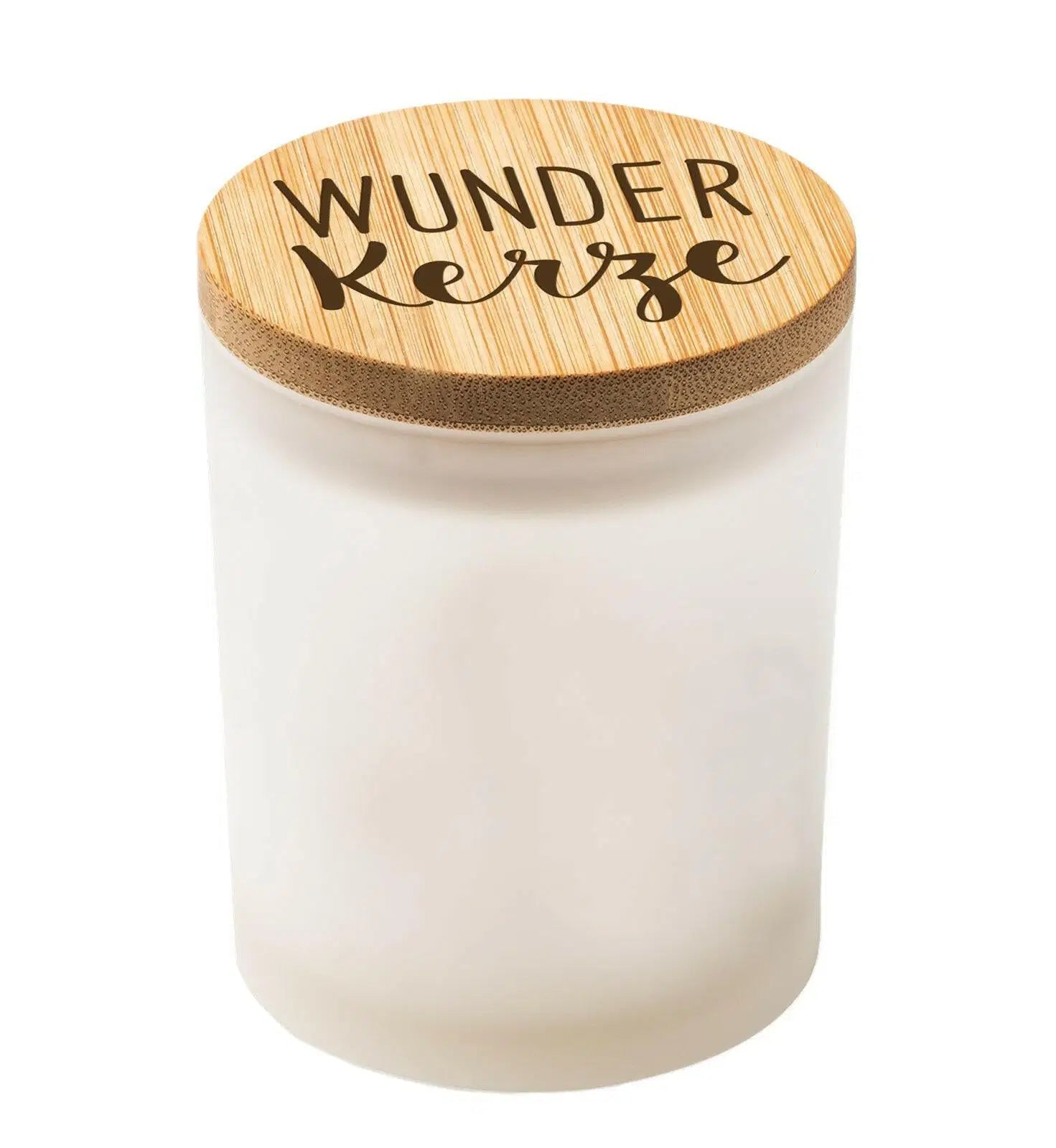Duftkerze mit Bambusdeckel und Spruch: Wunderkerze