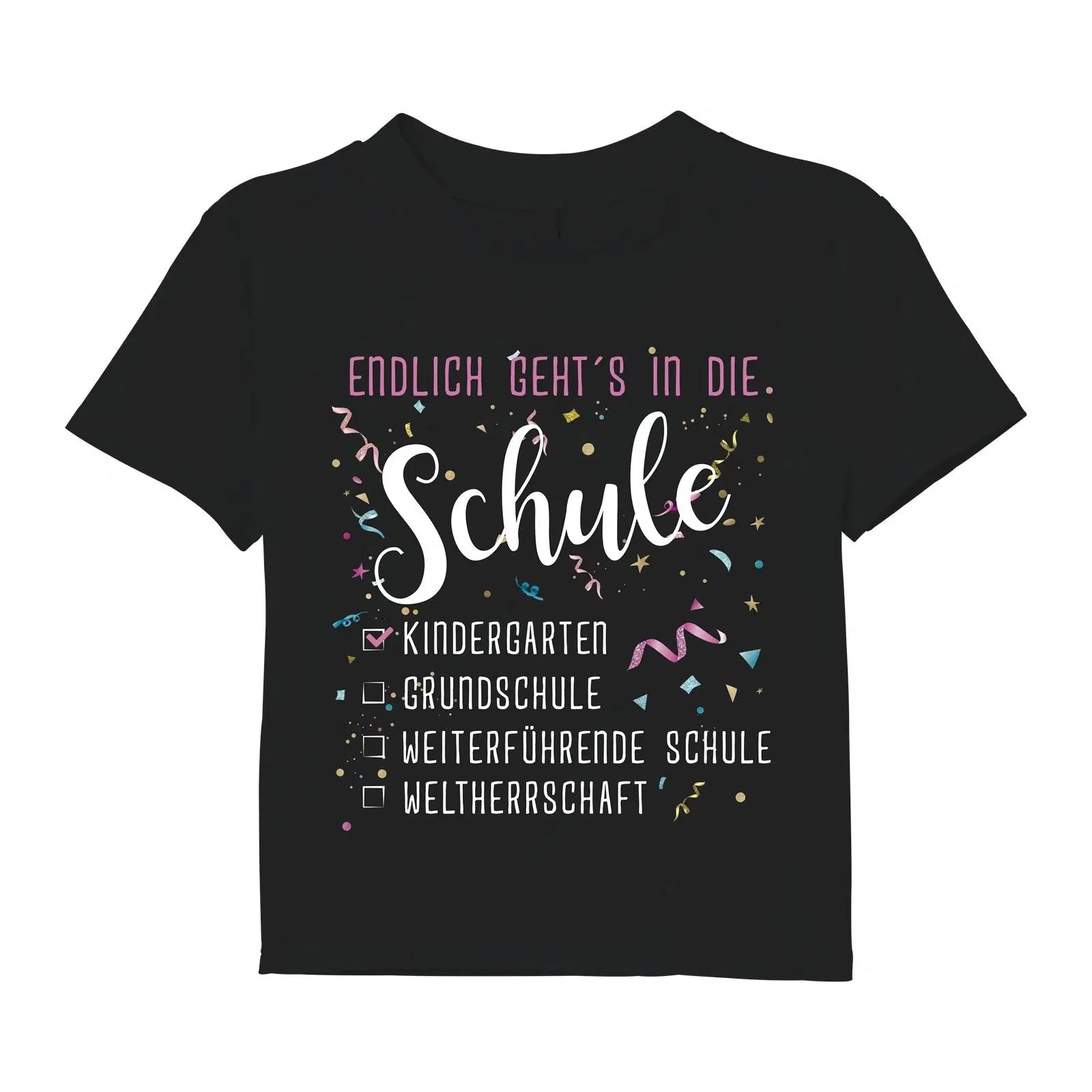 T-Shirt mit Spruch: Endlich geht´s in die Schule 🎉