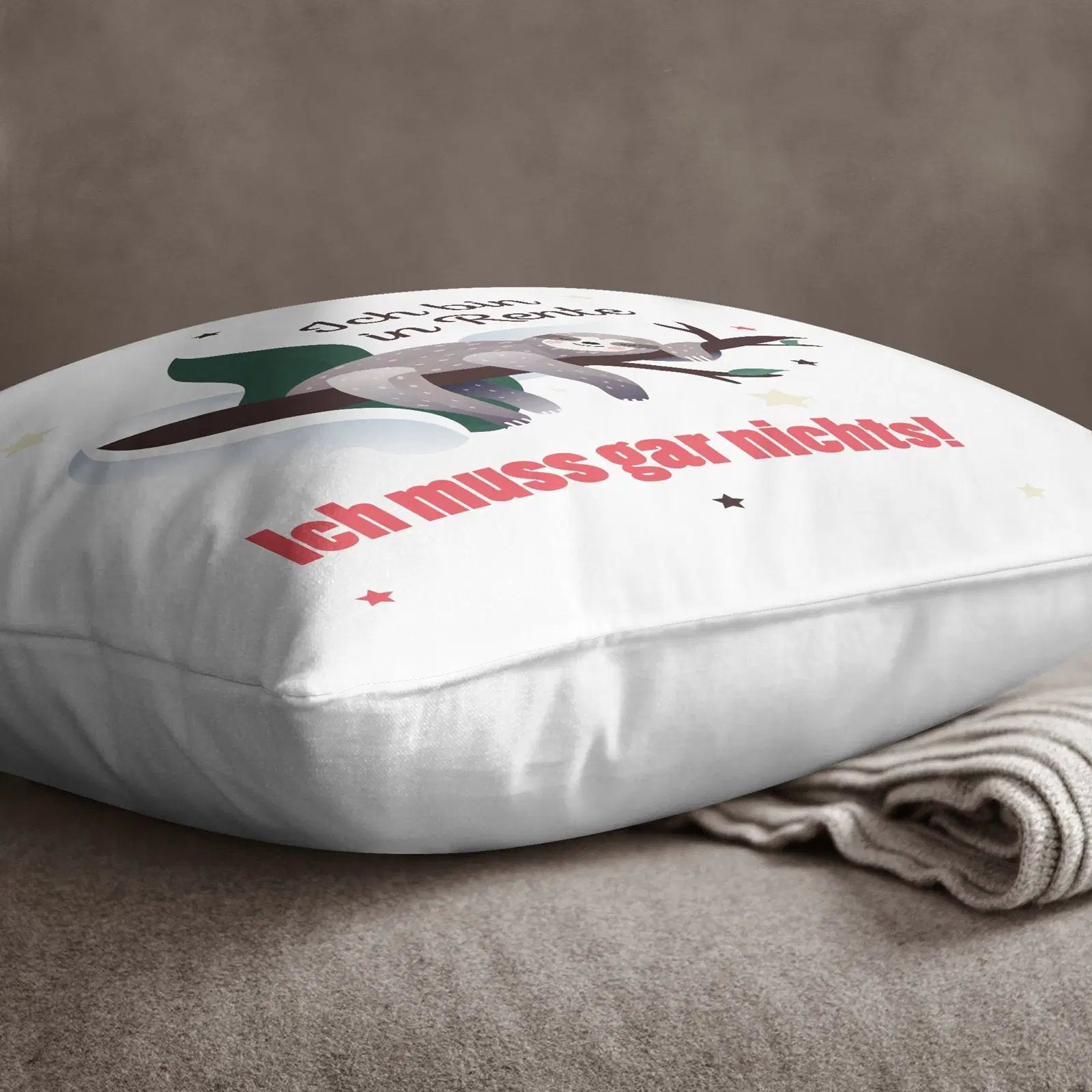 Zierkissen mit Spruch: Ich bin in Rente Ich muss gar nichts! 🦥