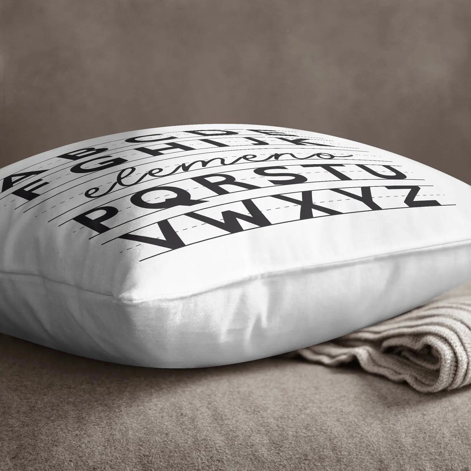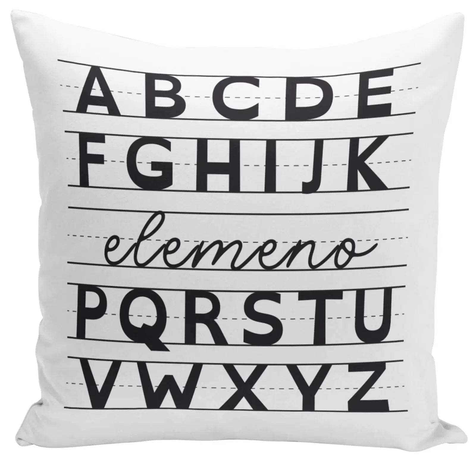 Dieses Dekokissen mit dem Aufdruck 'ABC elemeno P' ist ein schönes Geschenk für all die kleinen Schulanfänger da draußen, die gerade erst dabei sind, das Alphabet zu lernen.