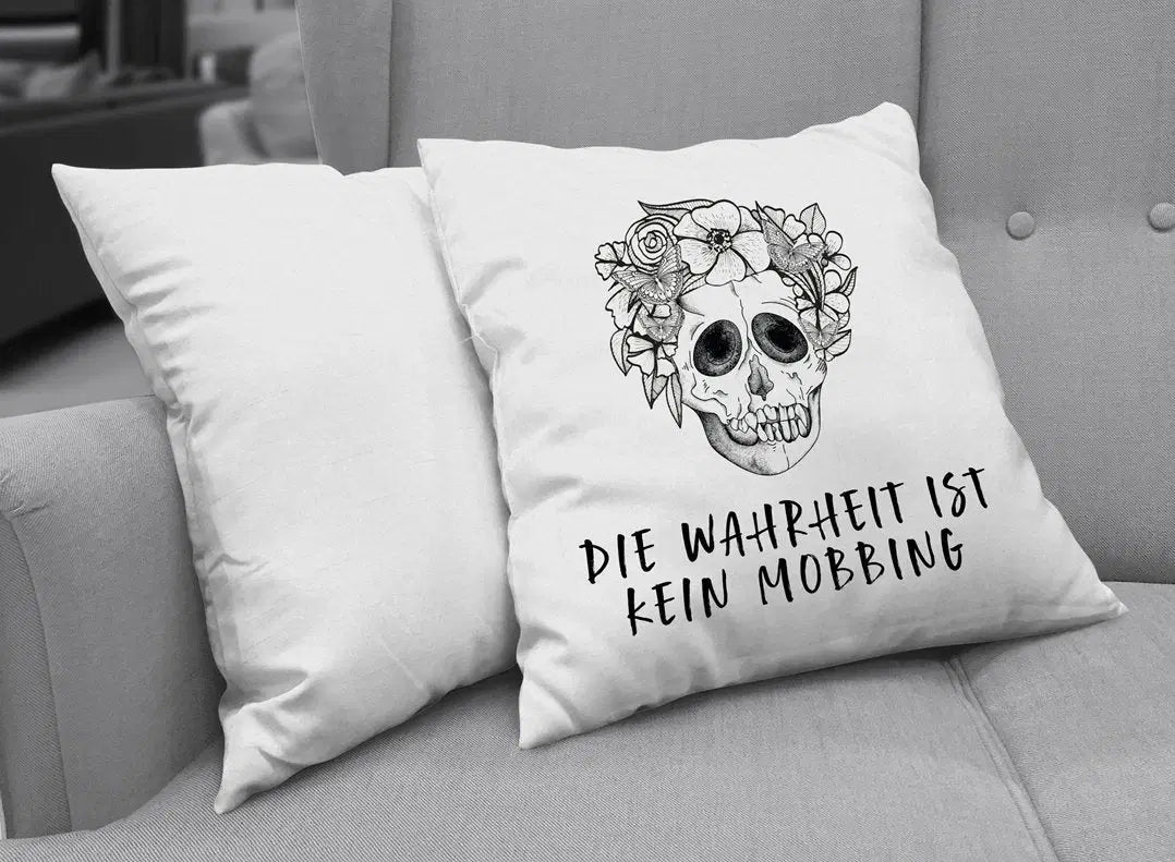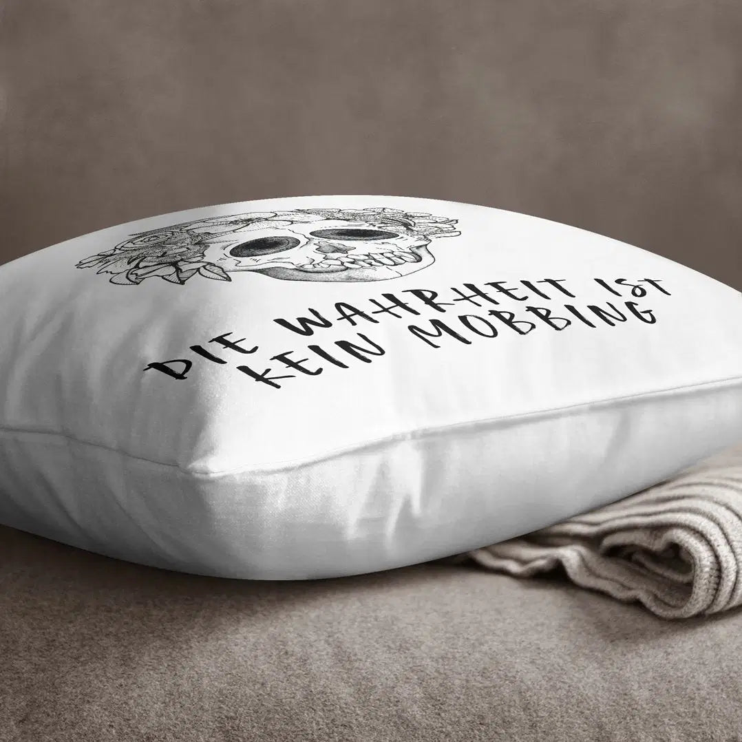 Totenkopf 💀Zierkissen mit Spruch: Die Wahrheit ist kein Mobbing 💀
