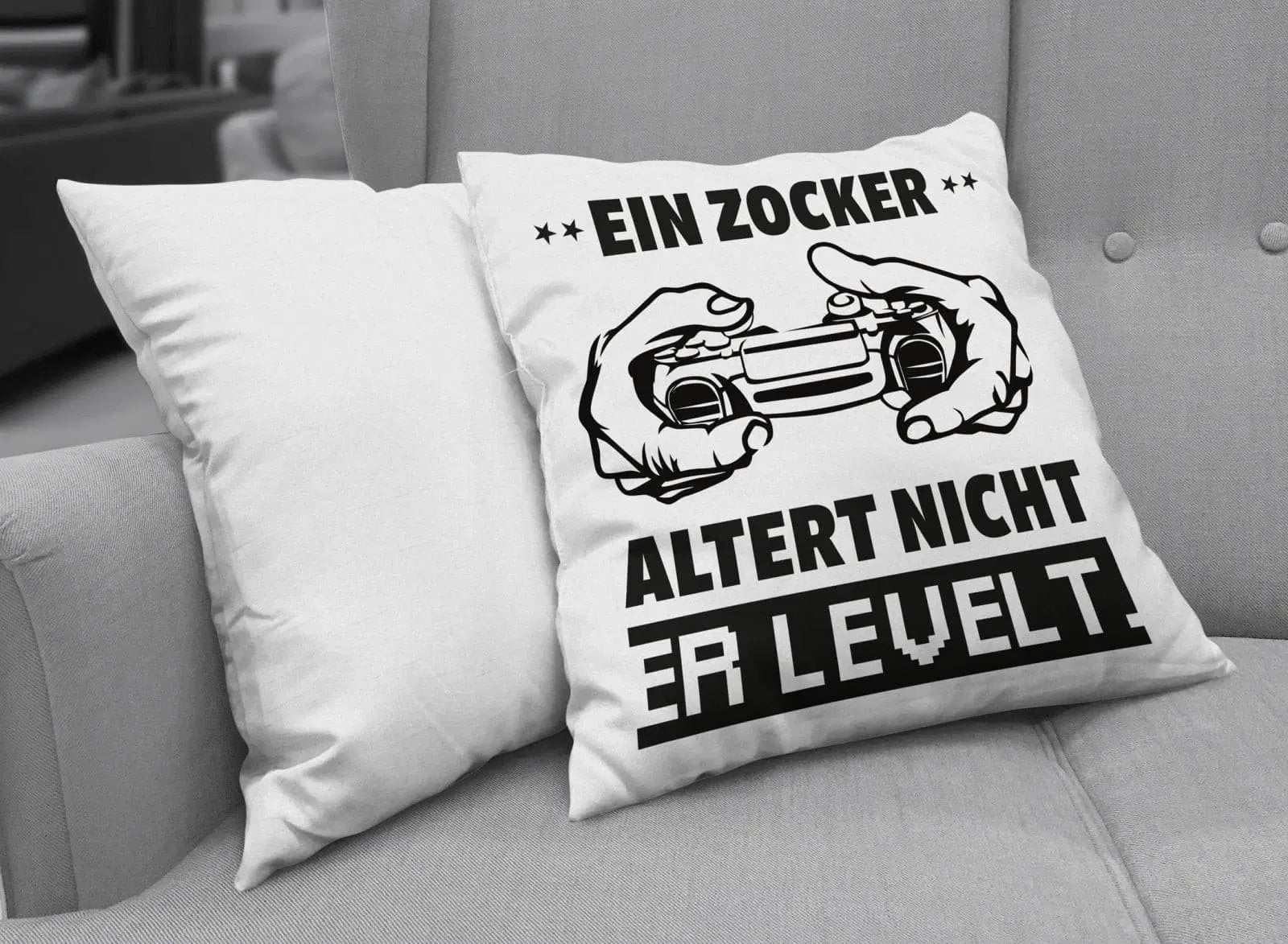 Zierkissen mit Spruch: Ein Zocker altert nicht er levelt. 🎮