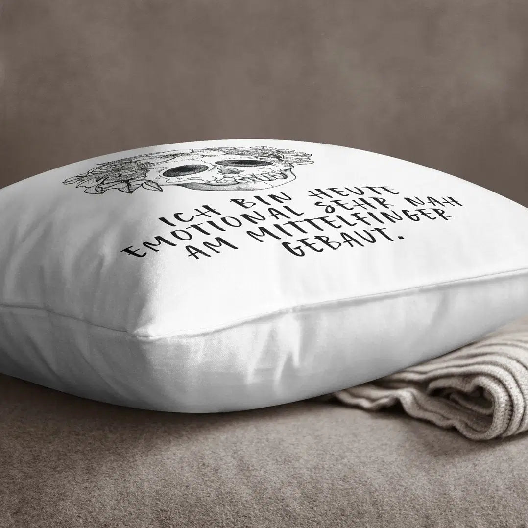 Totenkopf 💀Zierkissen mit Spruch: Ich bin heute emotional sehr nah am Mittelfinger gebaut. 💀