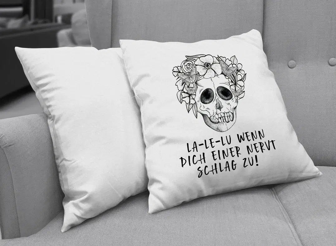 Totenkopf 💀Zierkissen mit Spruch: La-Le-Lu Wenn dich einer nervt schlag zu! 💀