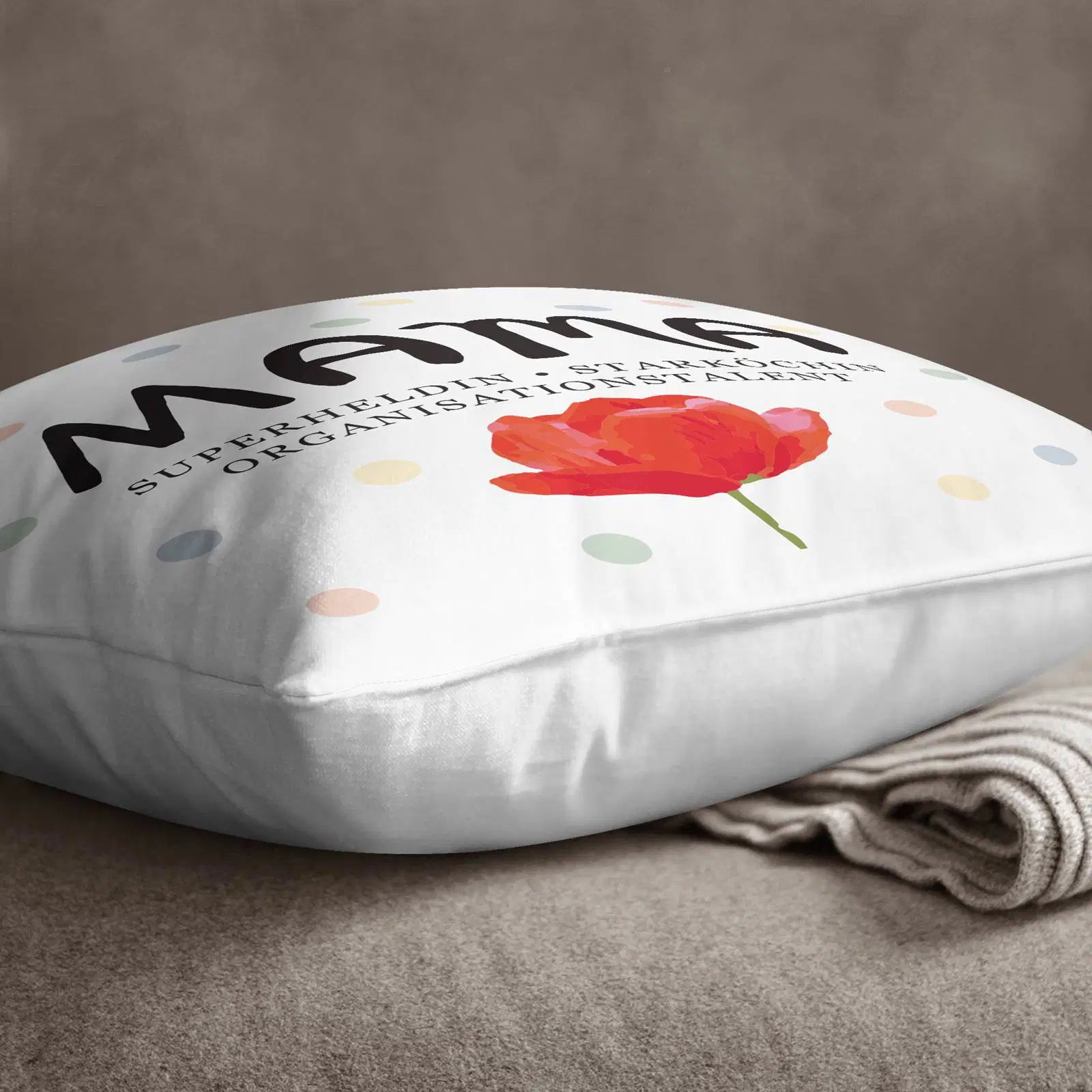 Zierkissen mit Spruch: Mama - Superheldin, Starköchin, Organisationstalent 🌹