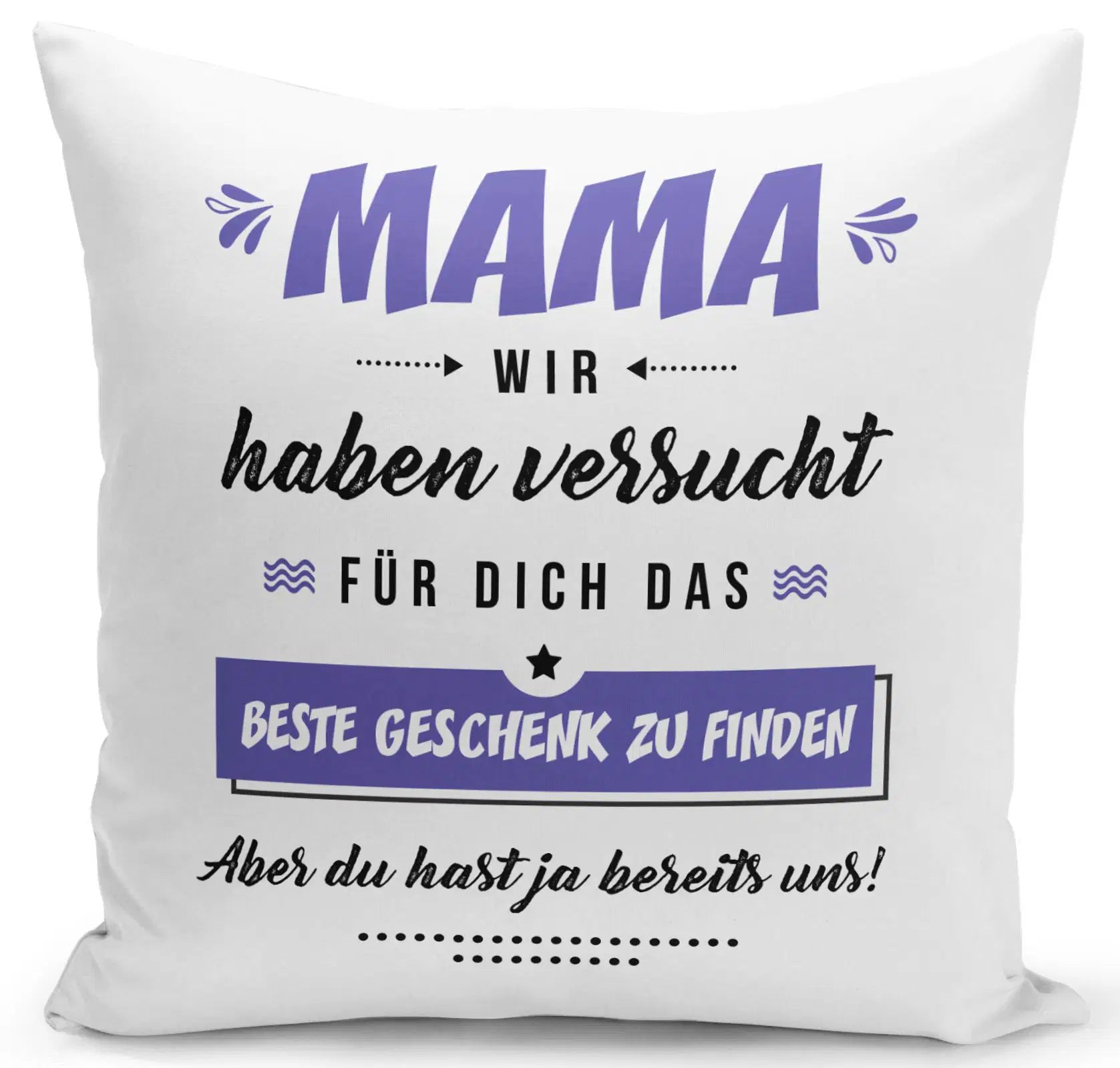 Kissen mit Spruch: Mama wir haben versucht für Dich das beste Geschenk zu finden. Aber Du hast ja bereits uns! ⭐