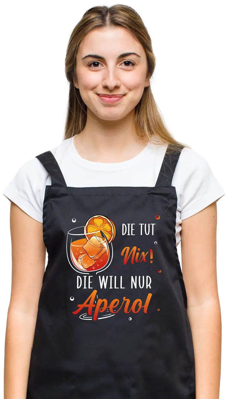 Kochschürze mit Spruch: Die tut nix! Die will nur Aperol. 🍹