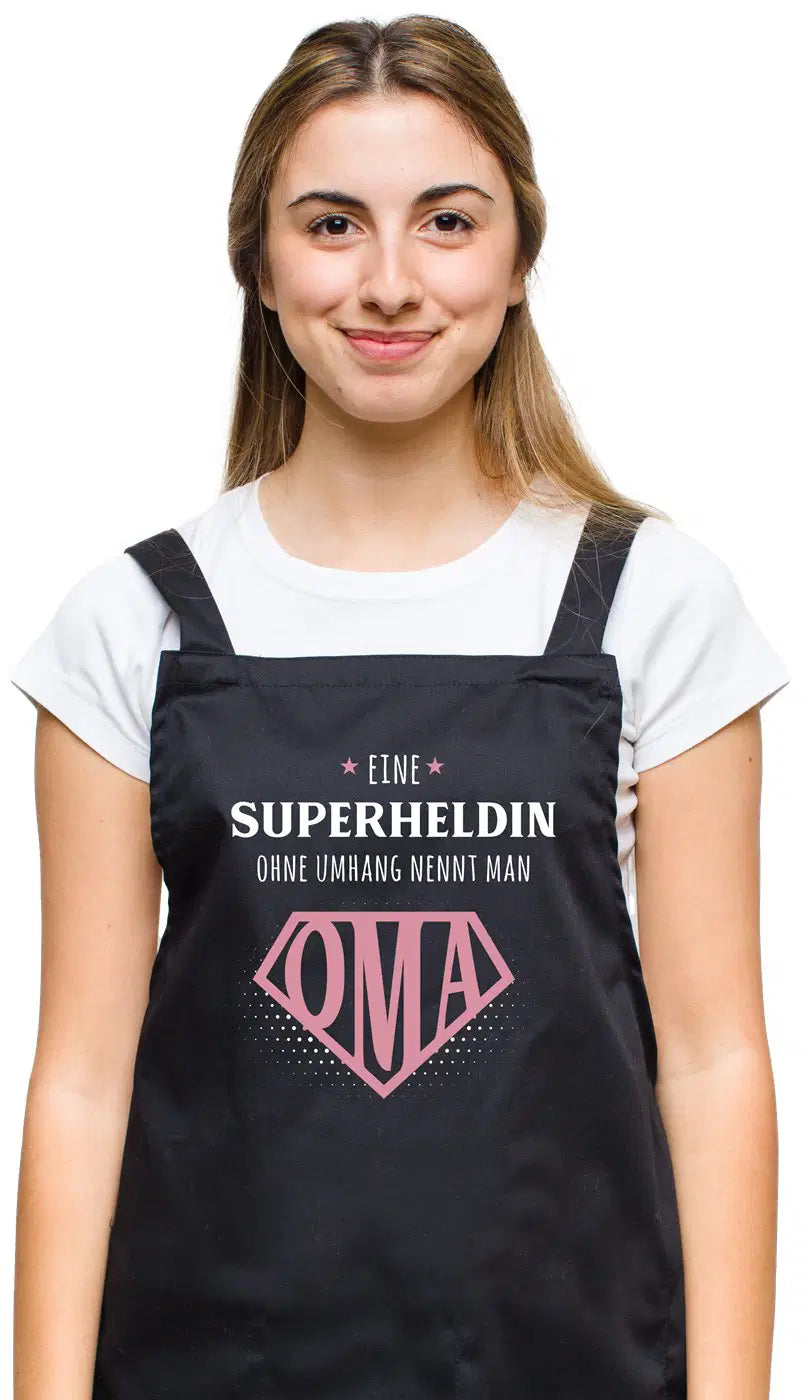 Kochschürze mit Spruch: Eine Superheldin ohne Umhang nennt man Oma ⭐