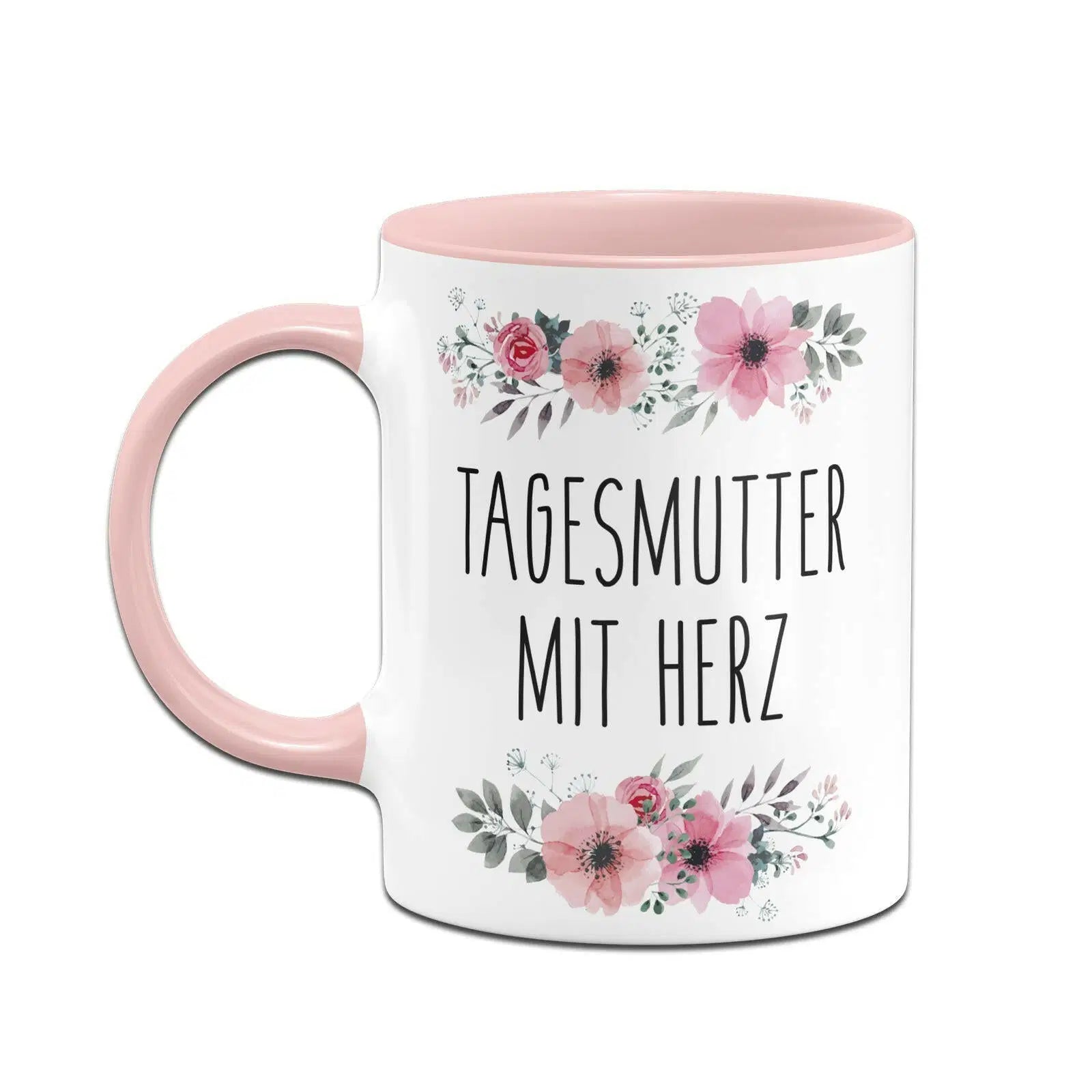 Blümchen-Tasse 🌸 mit Spruch: Tagesmutter mit Herz 💗
