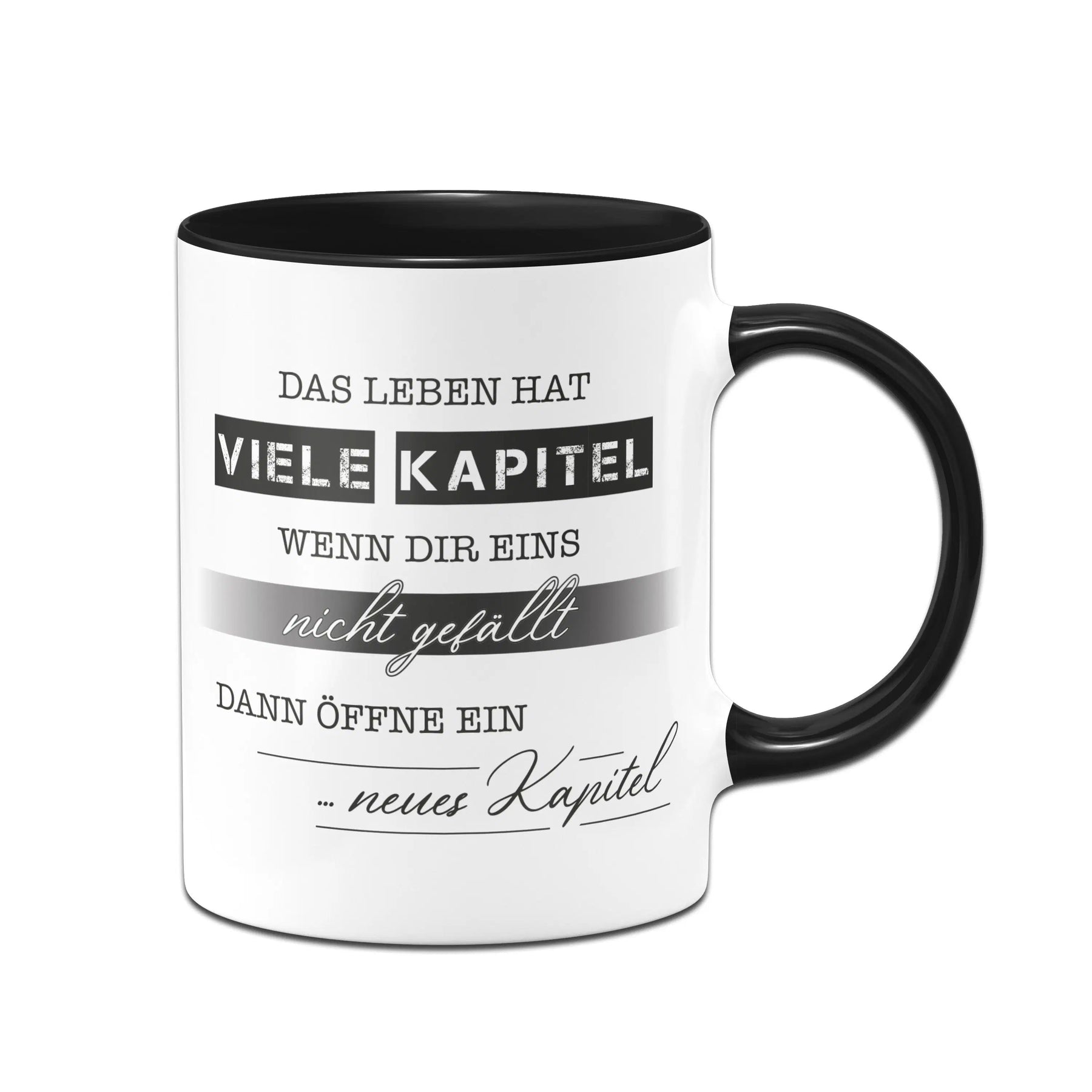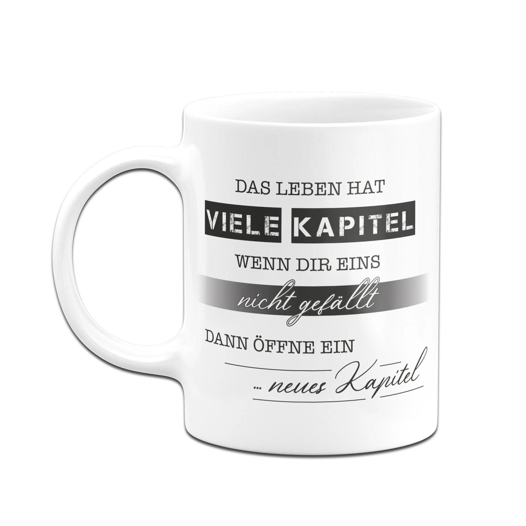 Motivations-Tasse mit Spruch: Das Leben hat viele Kapitel, wenn die eins nicht gefällt, dann öffne ein neues Kapitel.