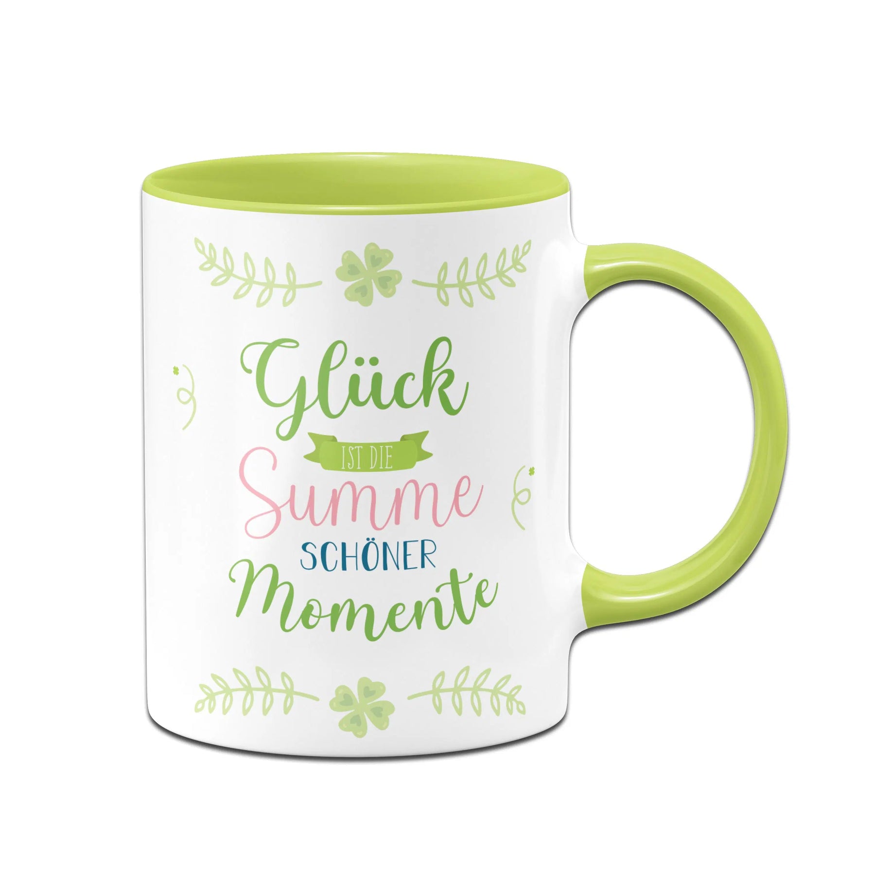 Tasse mit Spruch: Glück ist die Summe schöner Momente 🍀​