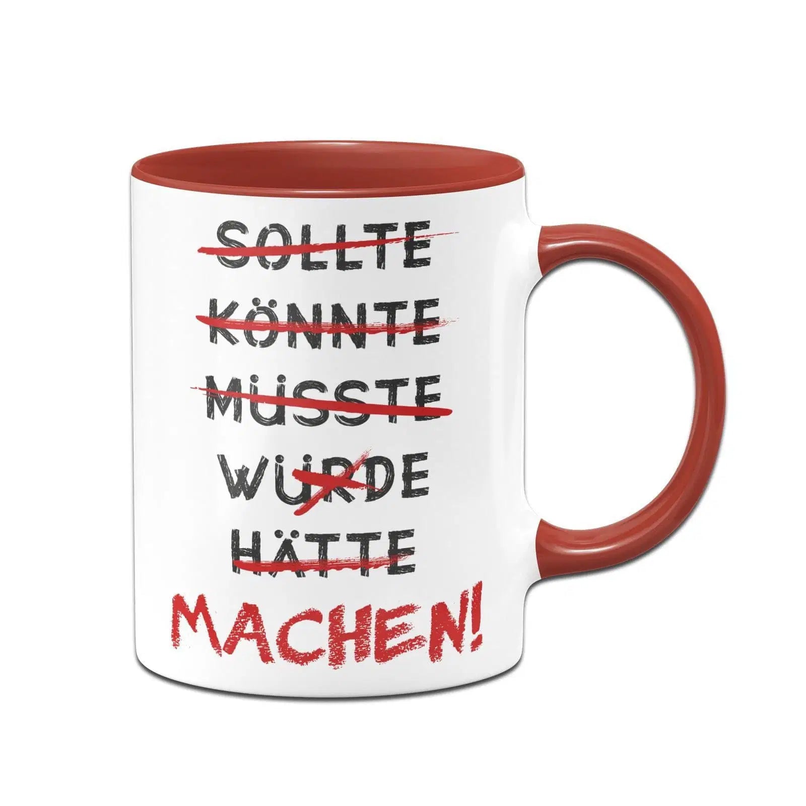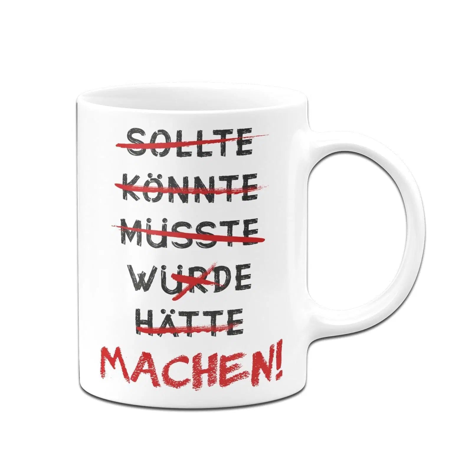 Tasse mit Spruch: Sollte, Könnte, Müsste, Würde, Hätte > MACHEN!