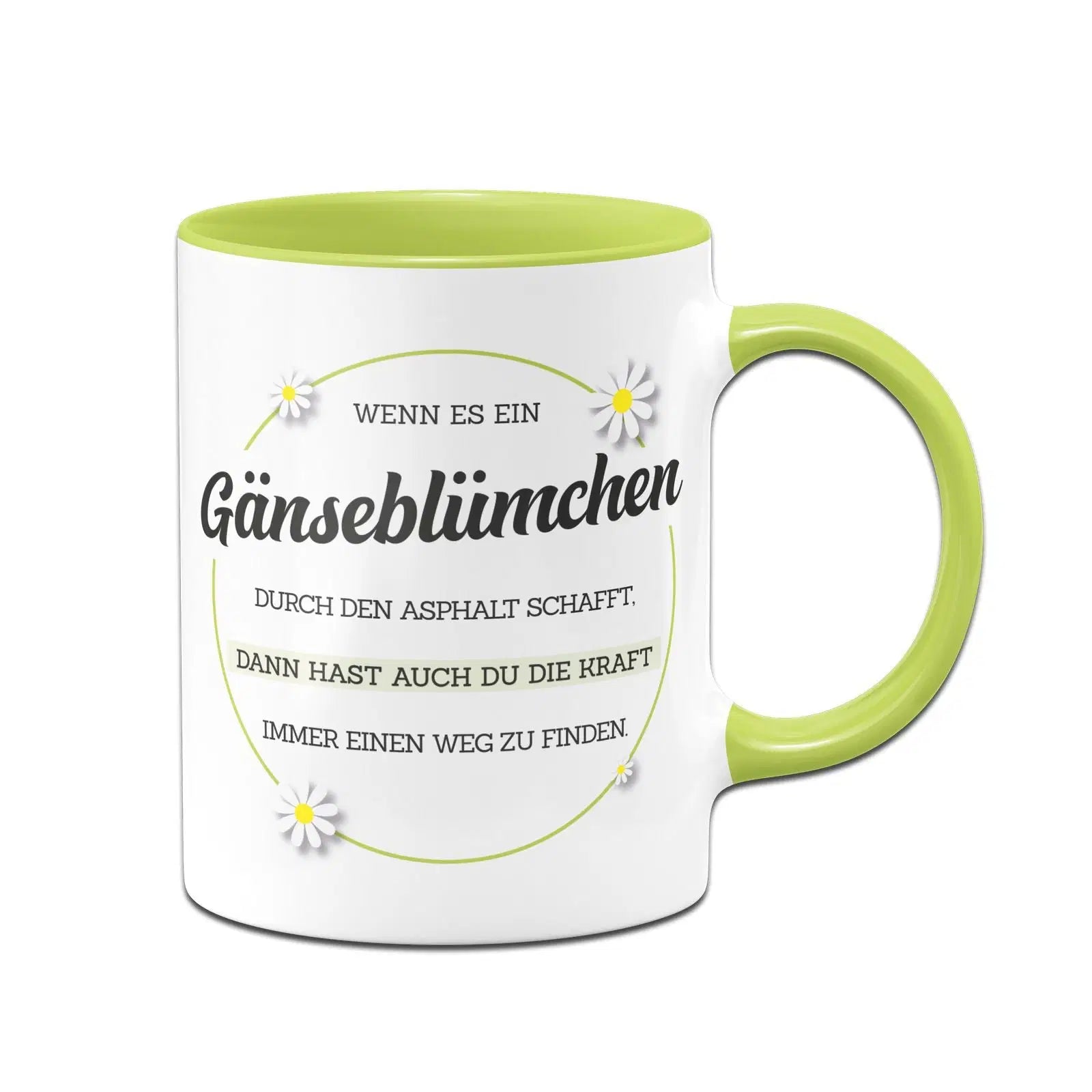 Motivations-Tasse mit Spruch: Wenn es ein Gänseblümchen durch Asphalt schafft, dann hast auch Du die Kraft immer einen Weg zu finden. 🌼