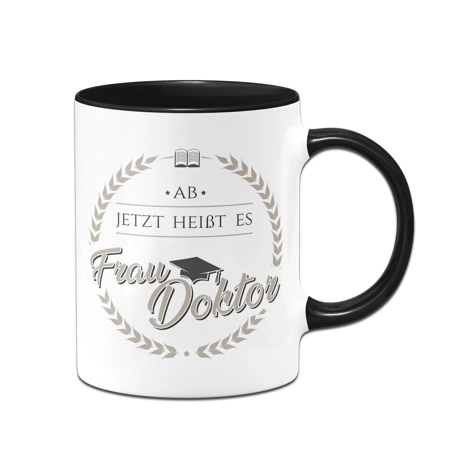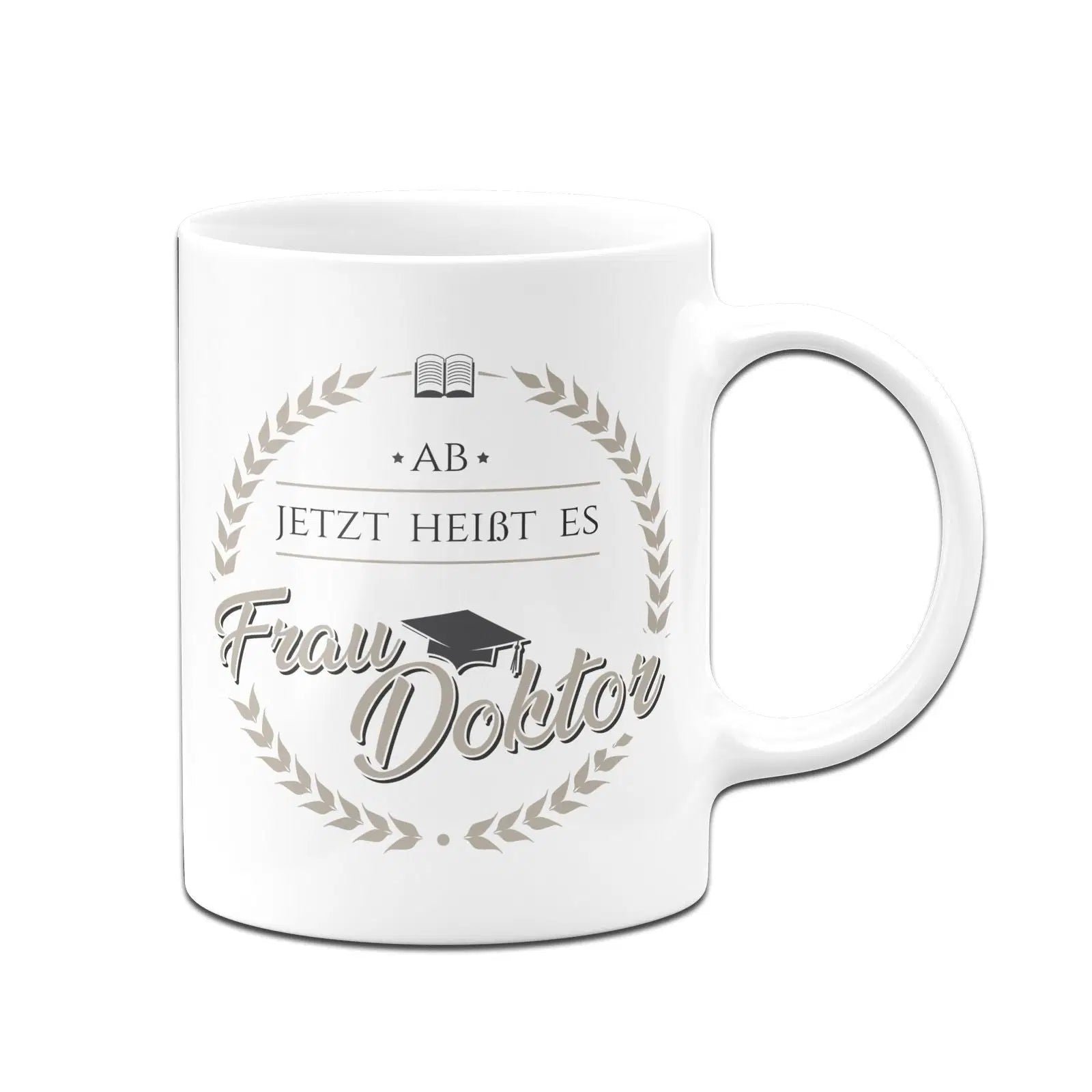 Tasse mit Spruch: Ab jetzt heißt es Frau Doktor