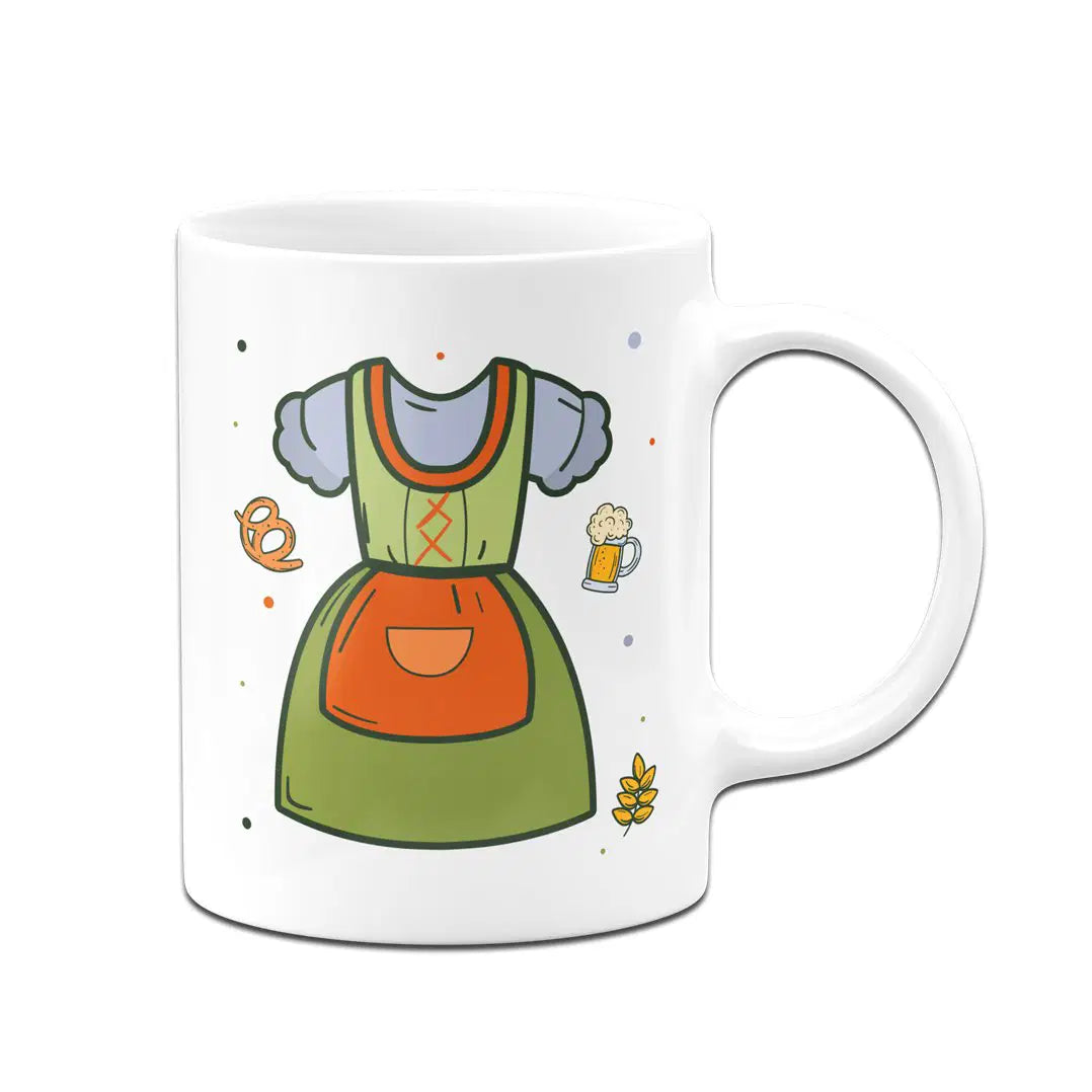 Hier ist die perfekte Tasse für dich, wenn du ein Fan von traditioneller Tracht und einem Hauch Humor bist! Diese Tasse mit einem charmanten Dirndl Motiv bringt nicht nur bayerisches Flair in deinen Alltag, sondern auch ein Lächeln auf dein Gesicht. Sie zeigt nicht nur das bekannte Dirndl, sondern auch lustige Elemente wie Brezn und Bier, die das Design abrunden.