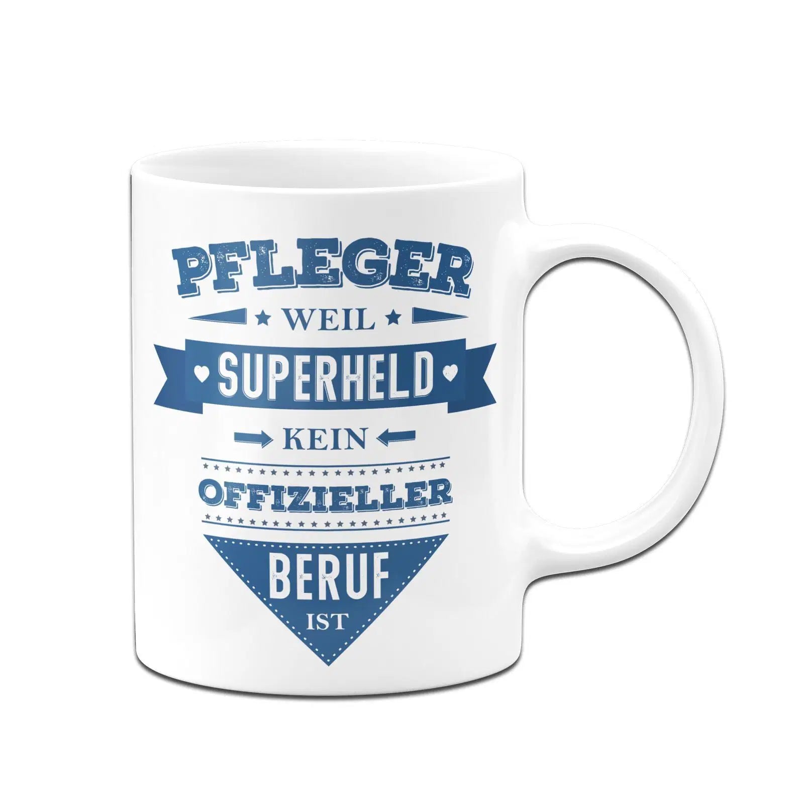 Tasse mit Spruch: Pfleger, weil Superheld kein offizieller Beruf ist.