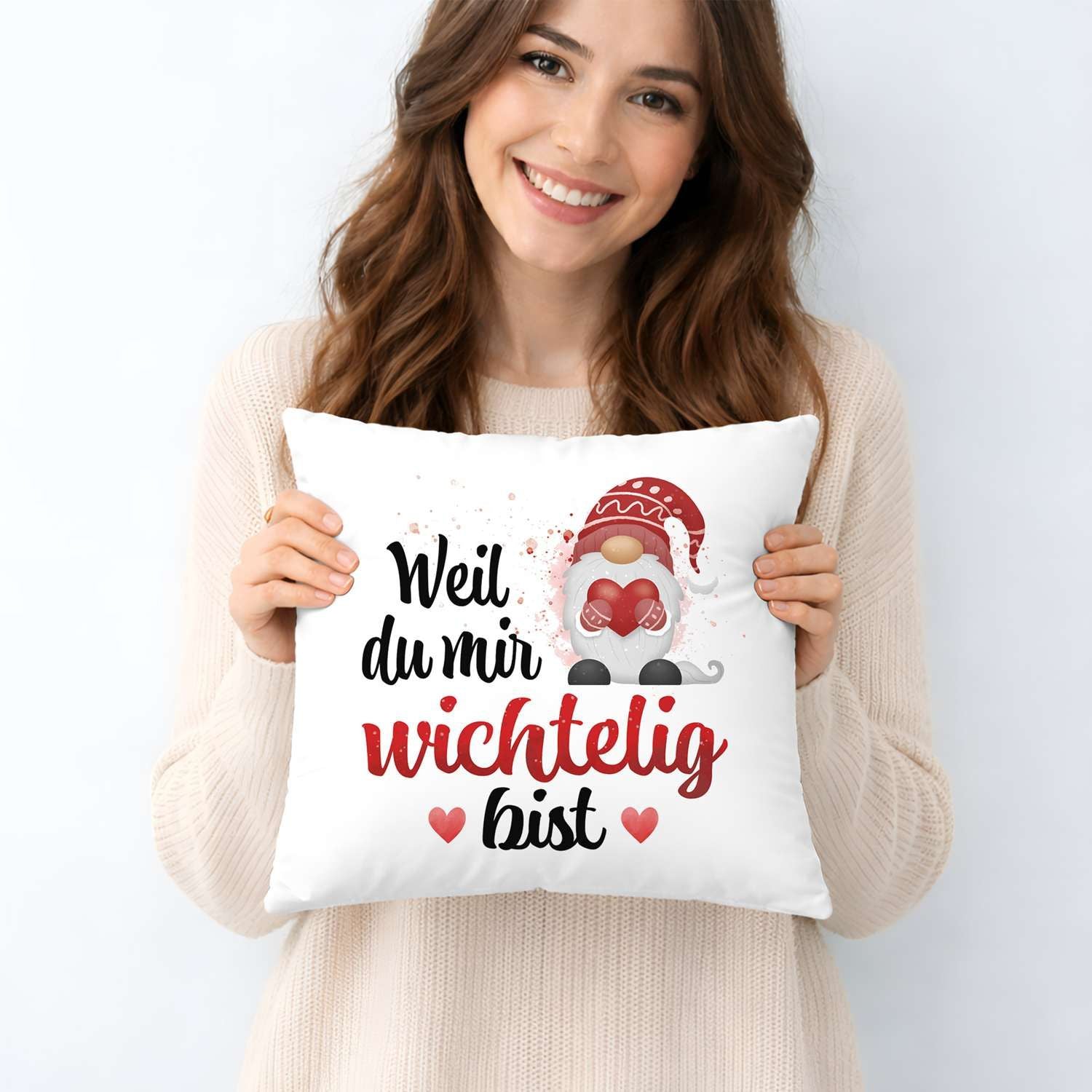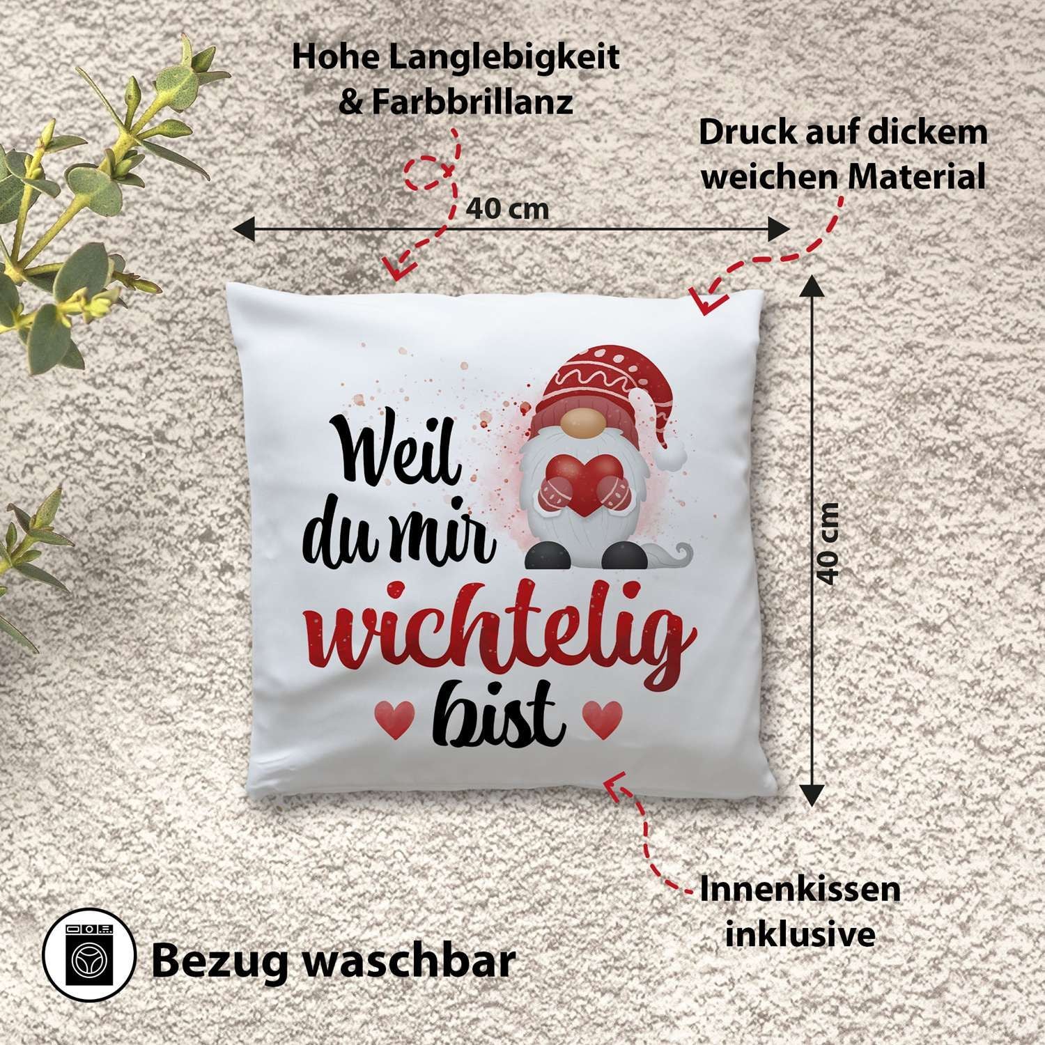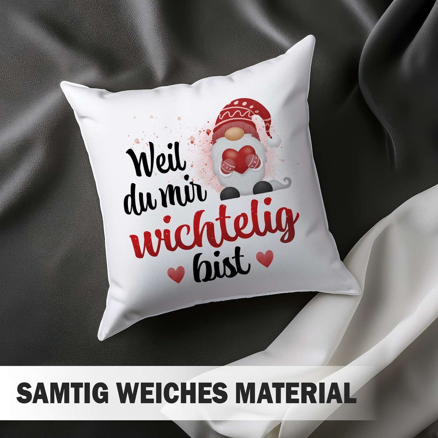 Das Kissen "Weil du mir wichtelig bist" ist mehr als nur ein Dekoelement. Es ist ein Herzensbotschafter, der auf charmante Weise zeigt, wie wichtig dir ein Mensch ist. Mit seinem niedlichen Wichtel-Motiv und dem liebevollen Spruch ist dieses Kuschelkissen das ideale Geschenk für deine Liebsten.