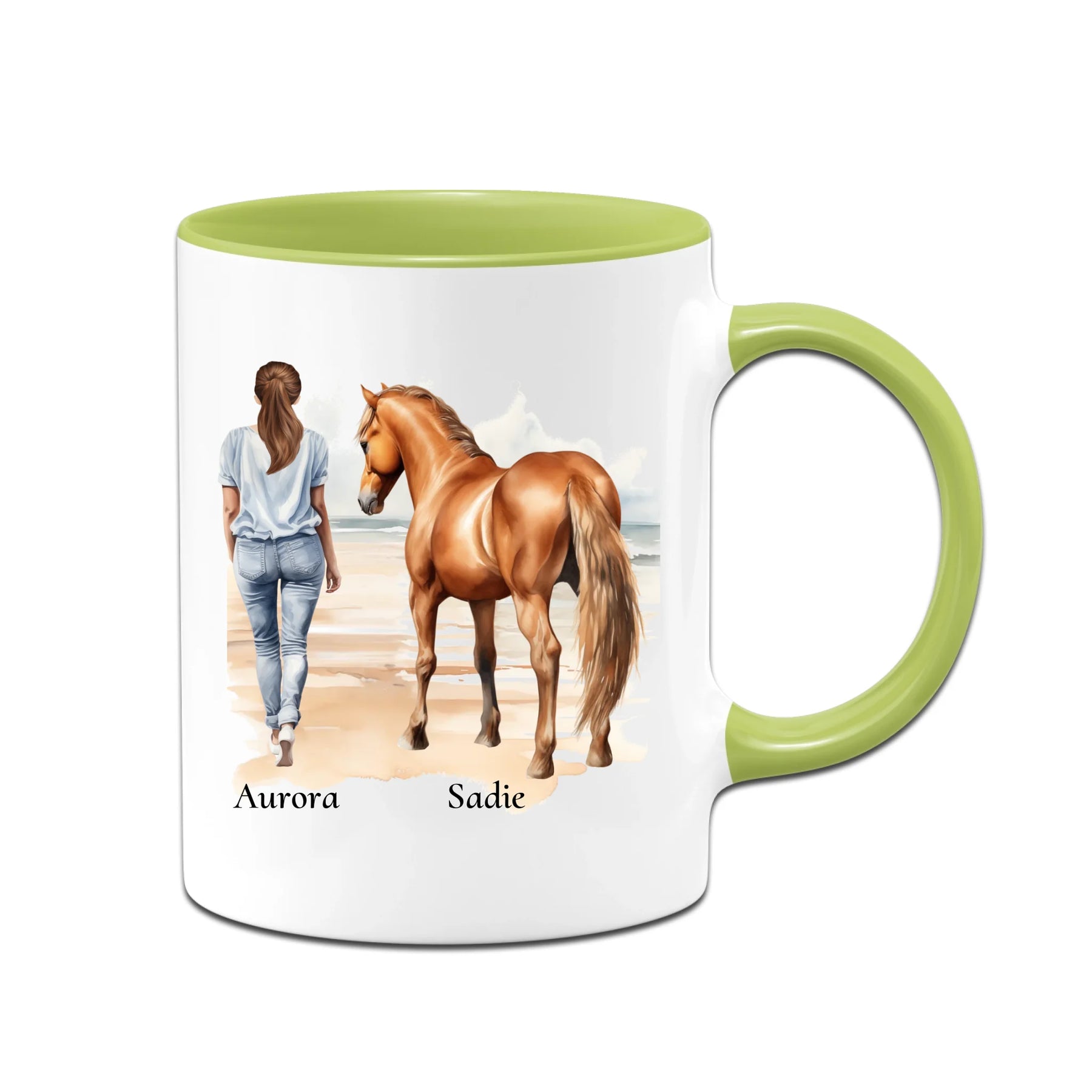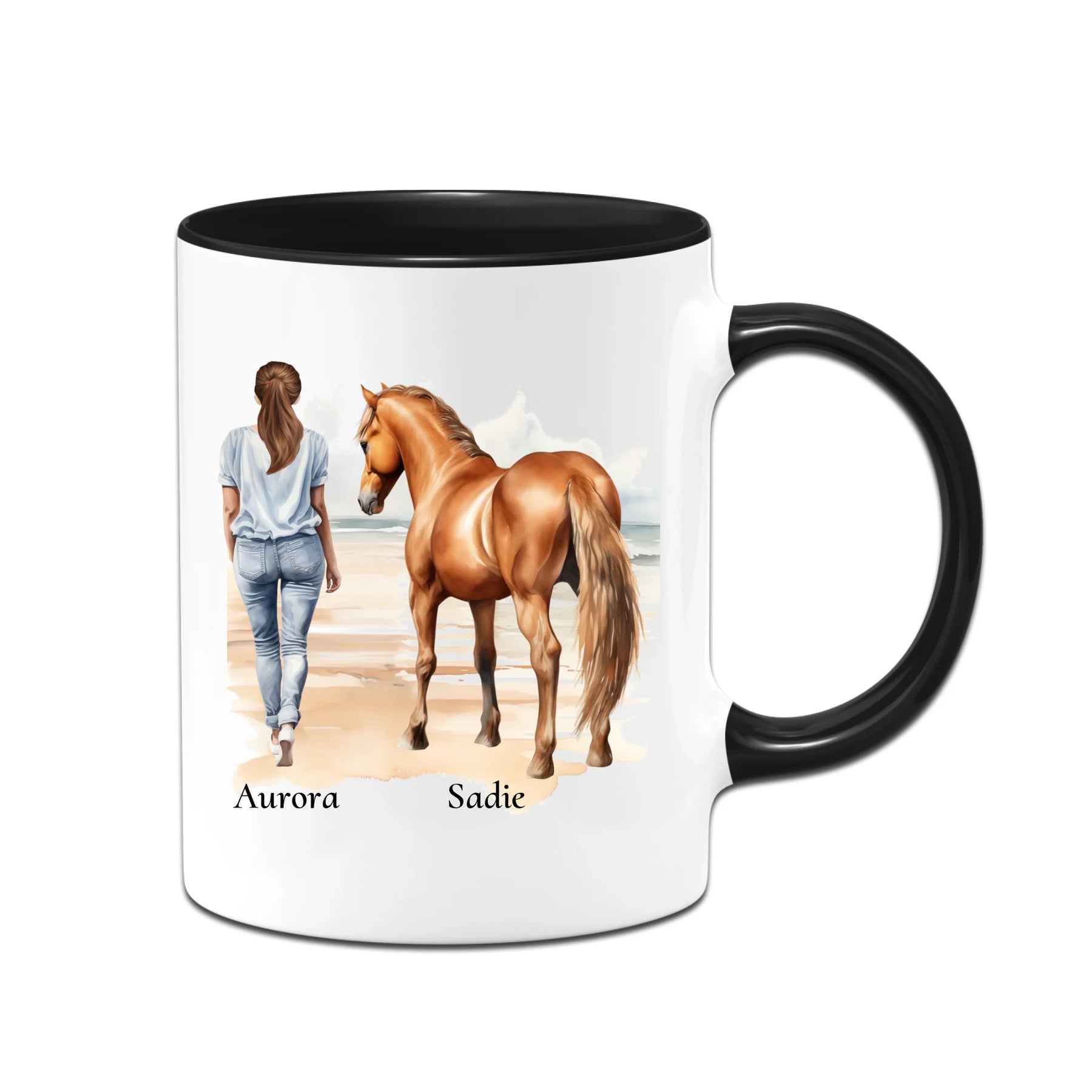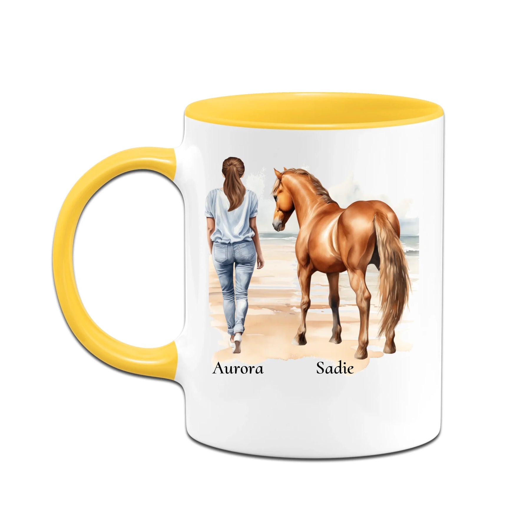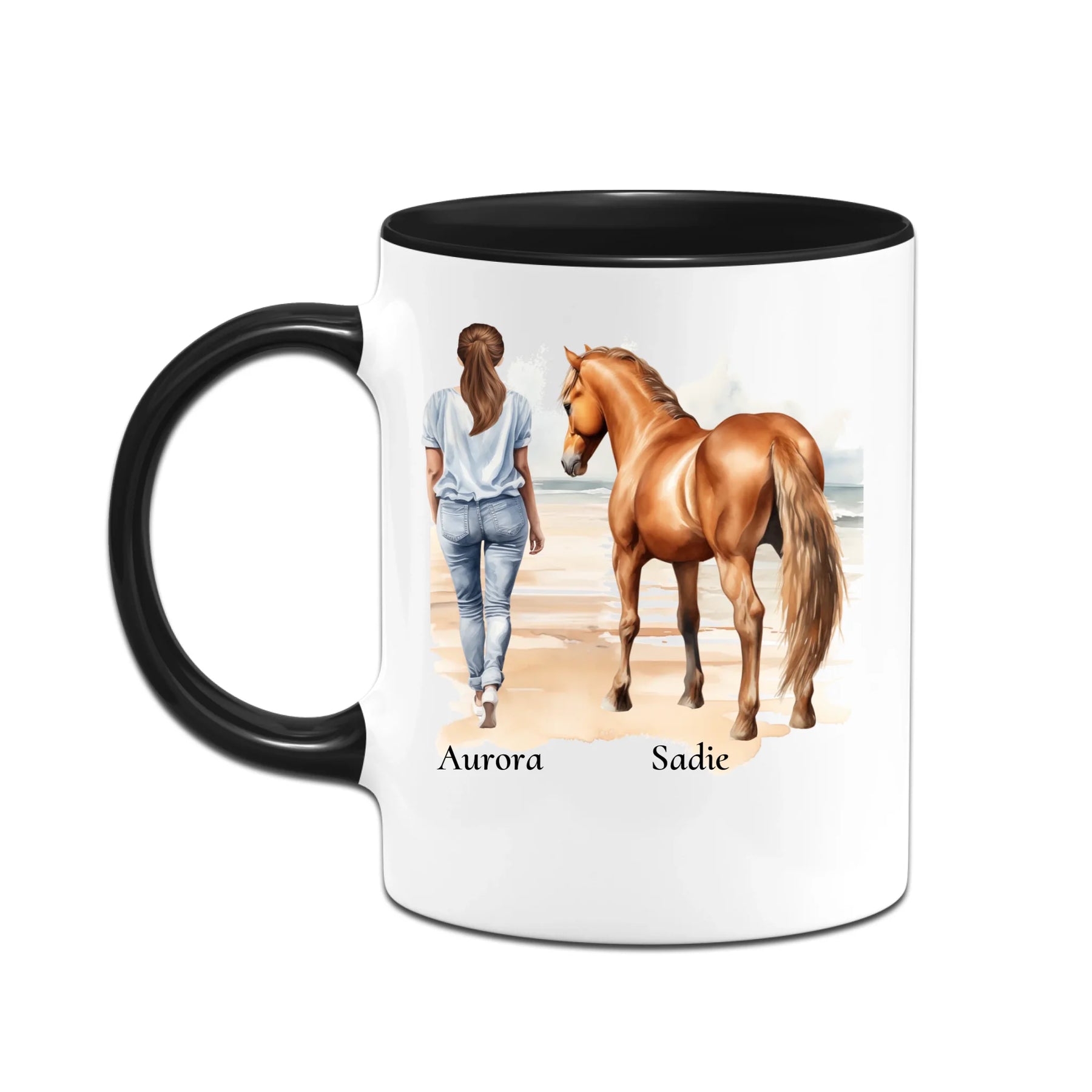 Personalisierte Tasse - Frau mit Pferd & Namen