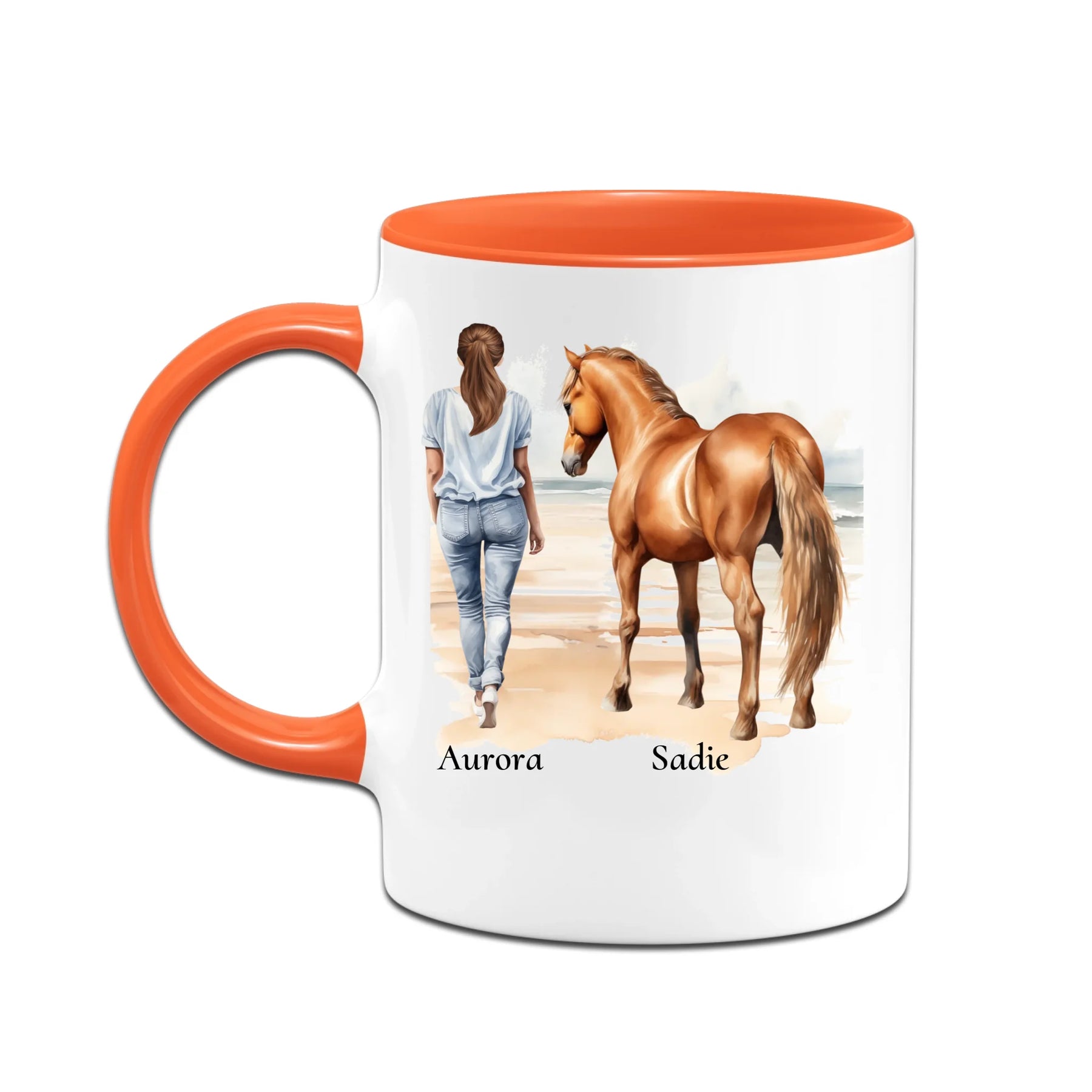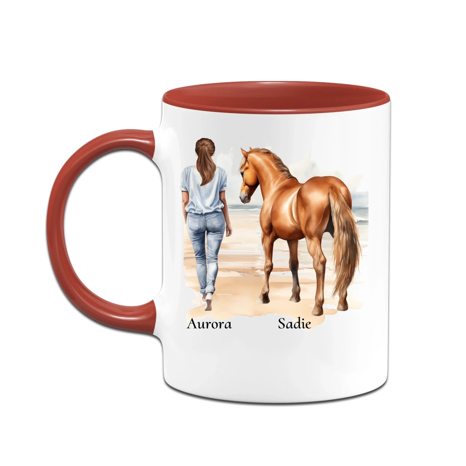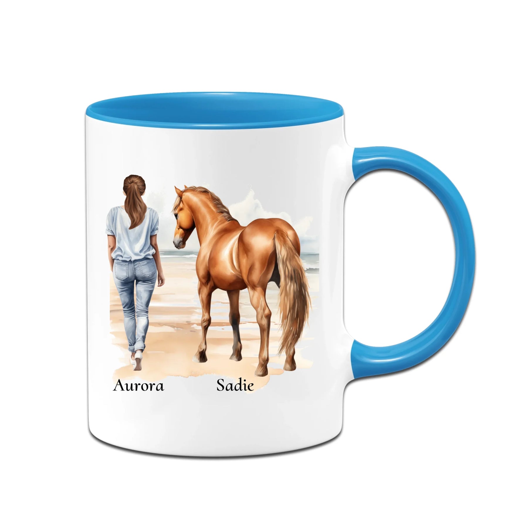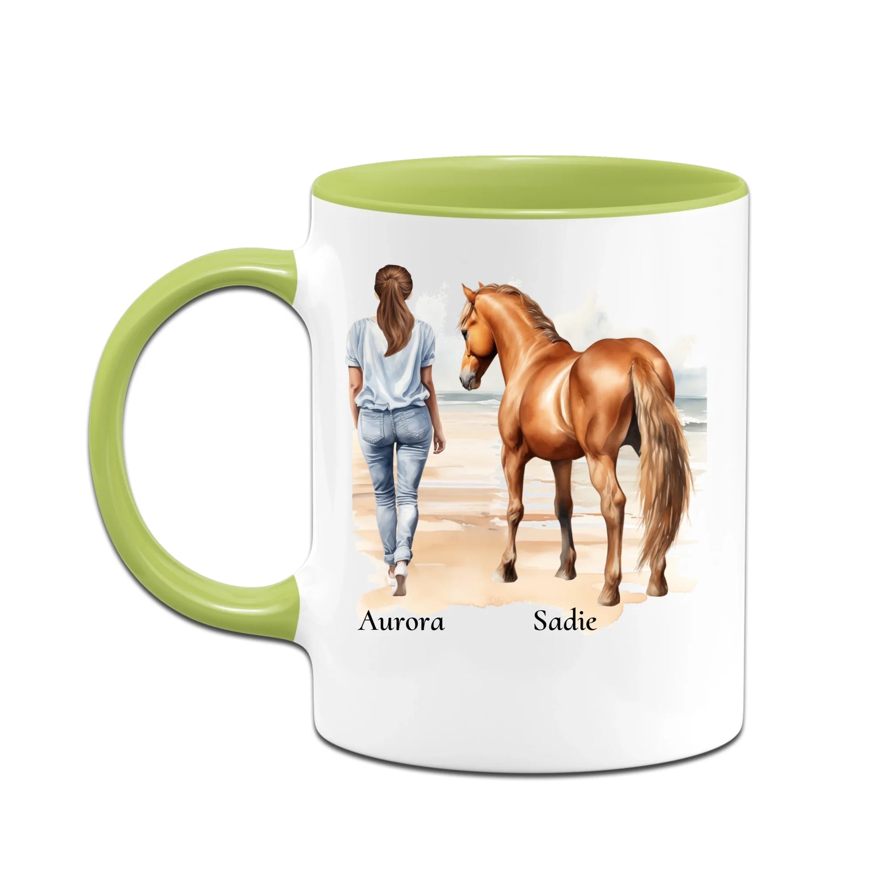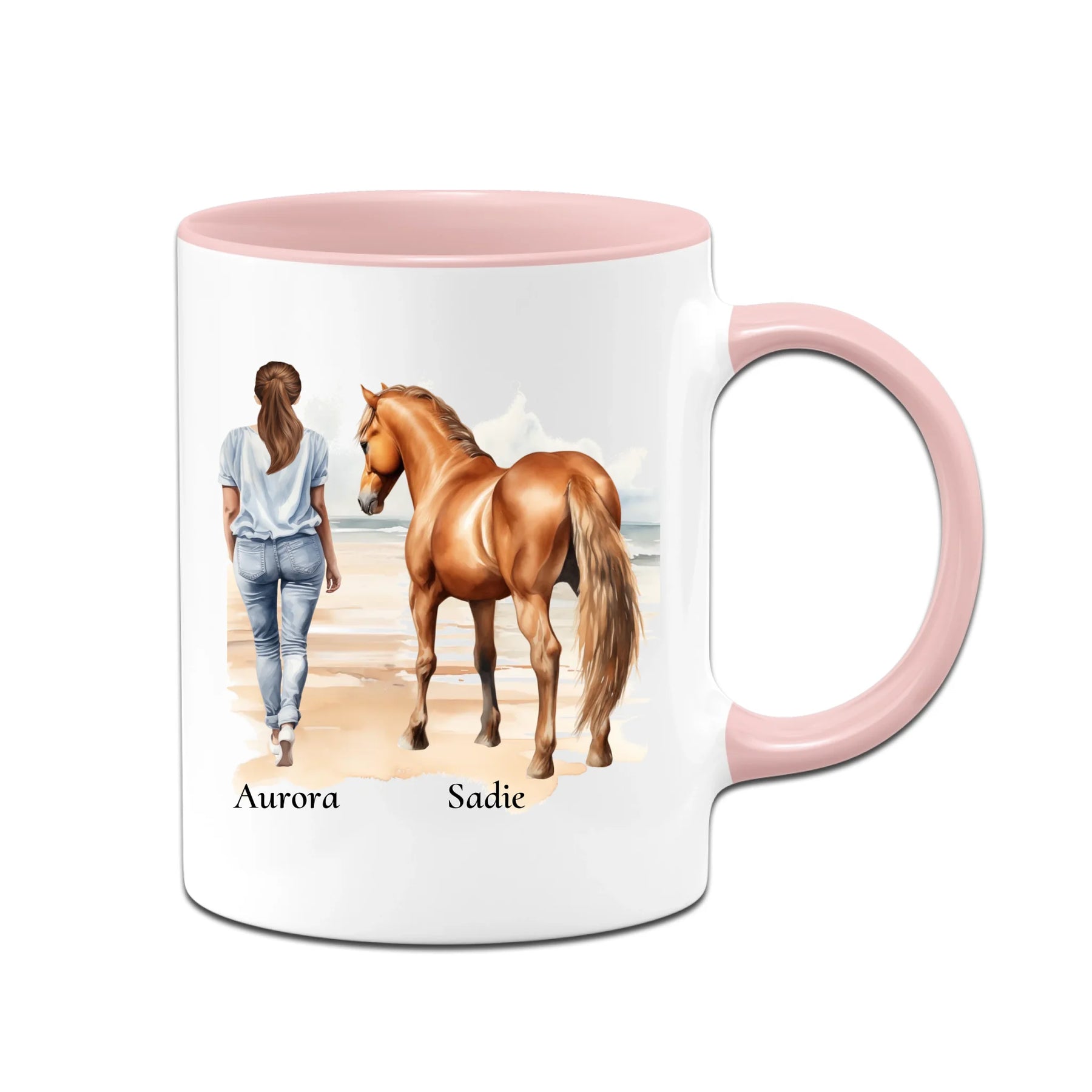 Personalisierte Tasse - Frau mit Pferd & Namen