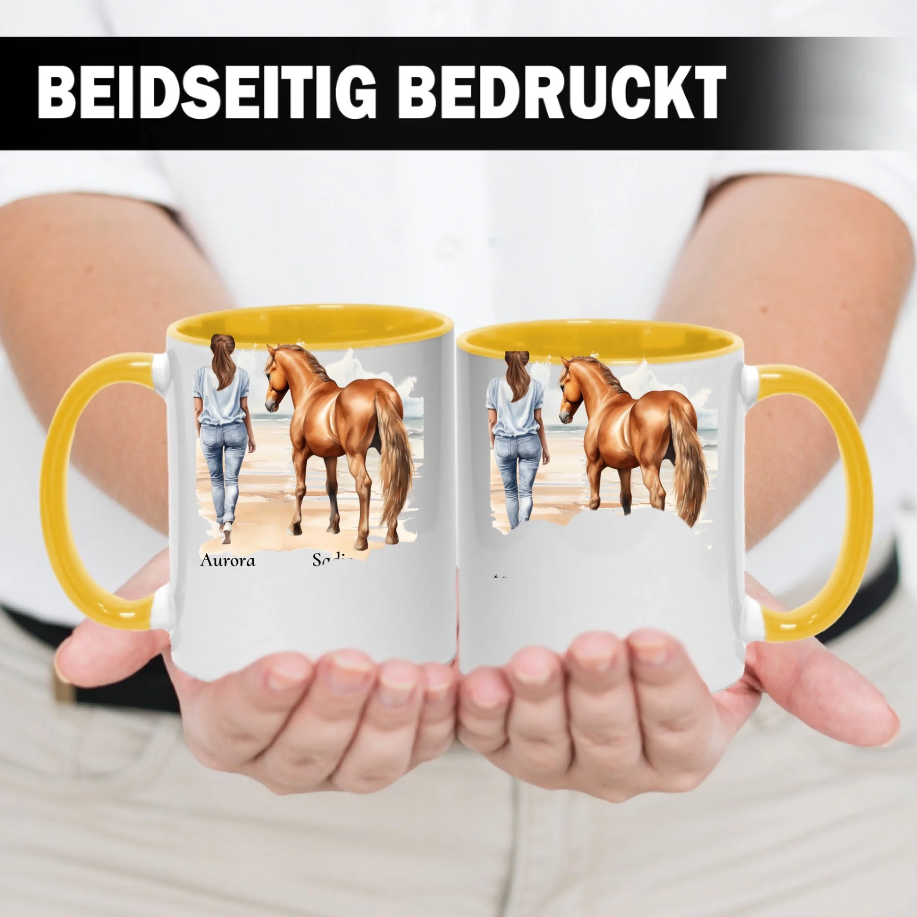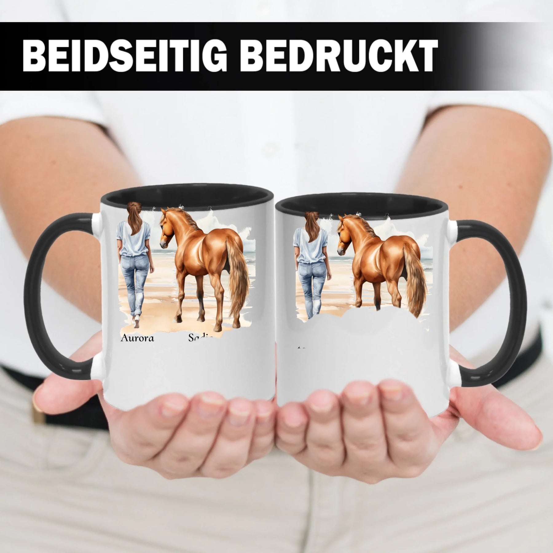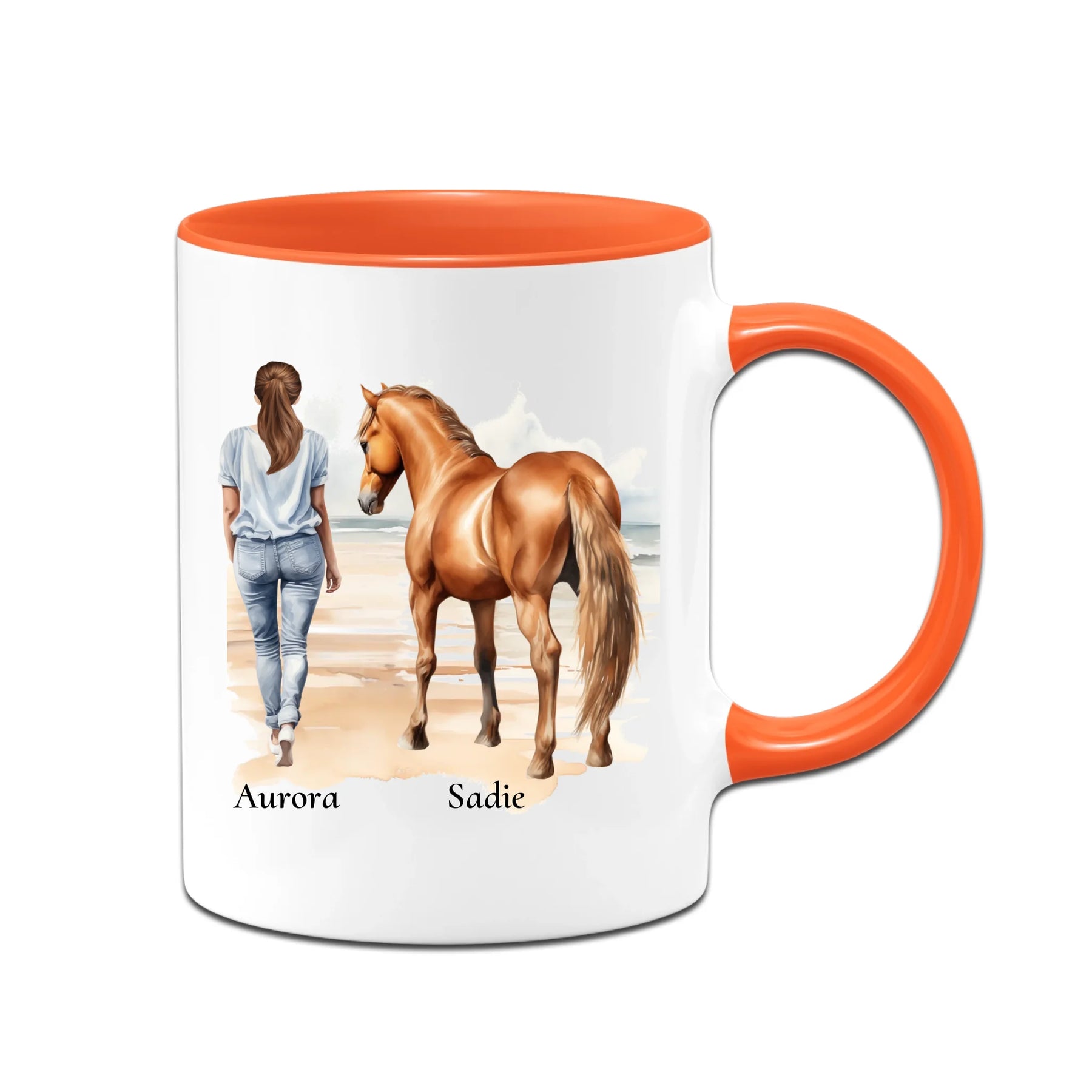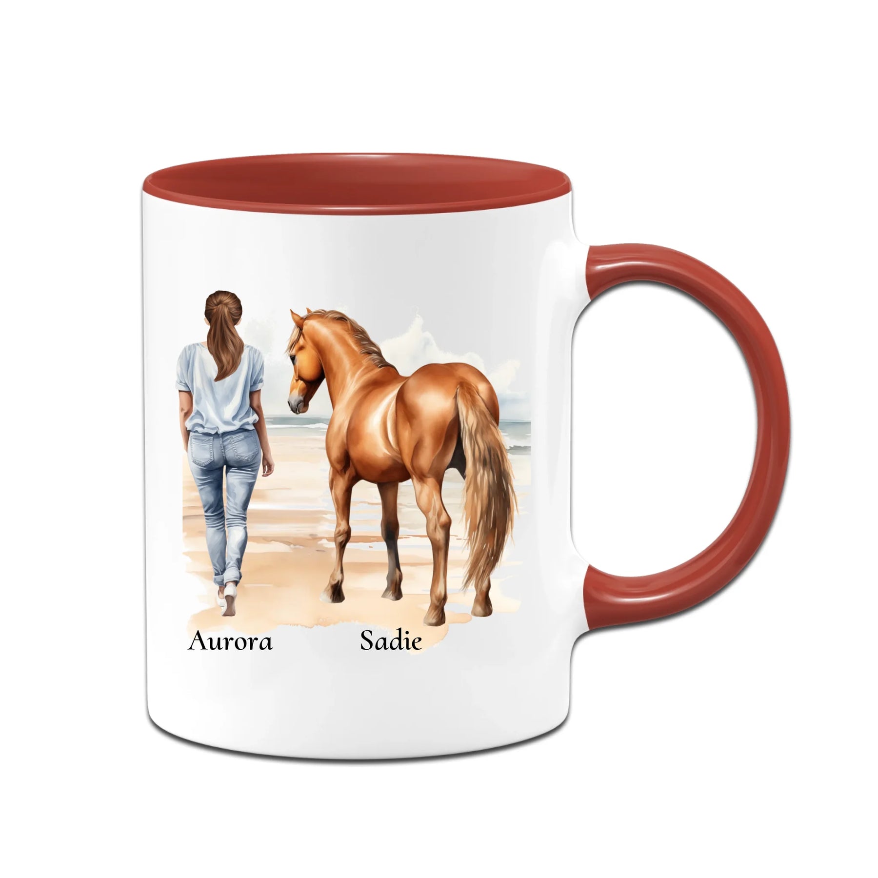 Personalisierte Tasse - Frau mit Pferd & Namen