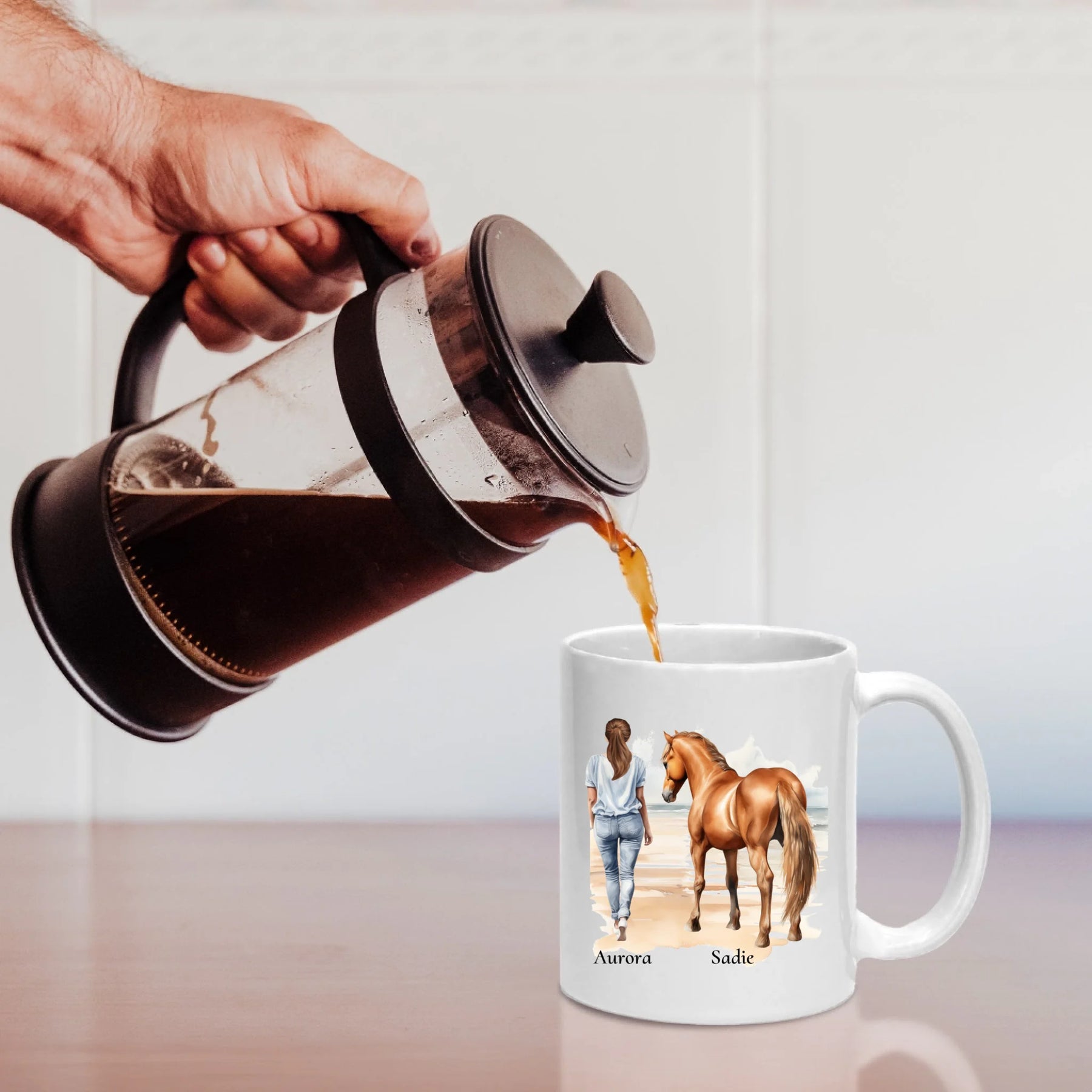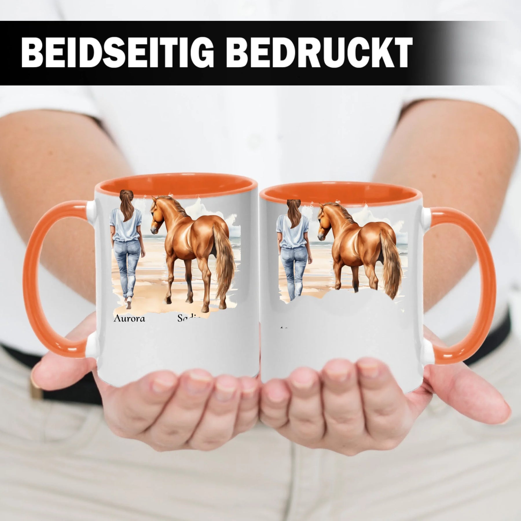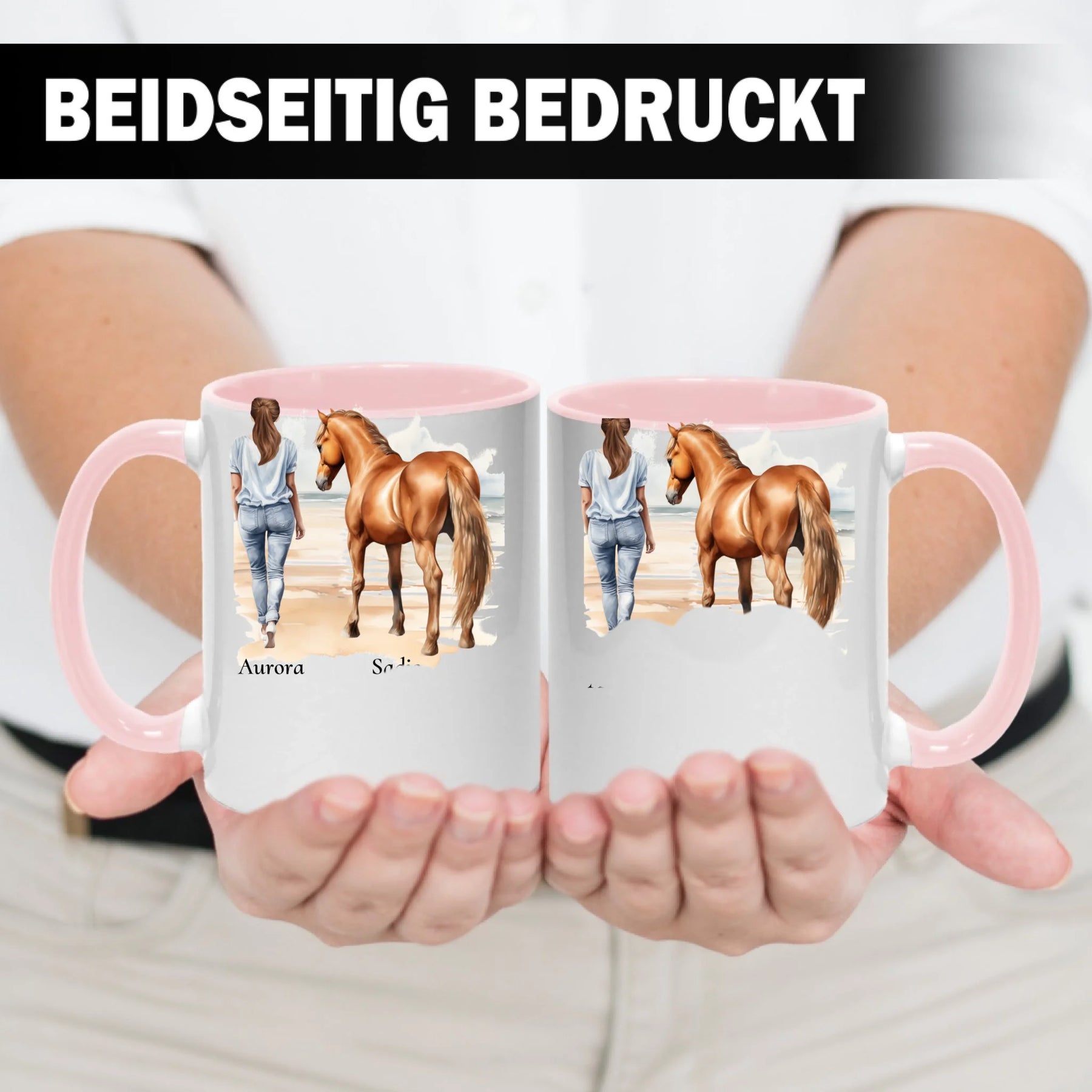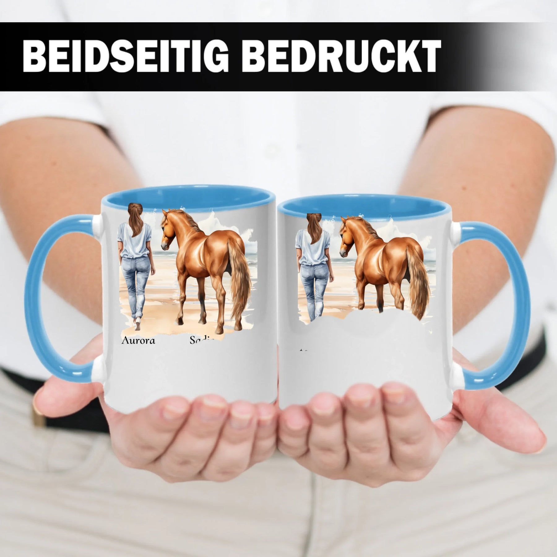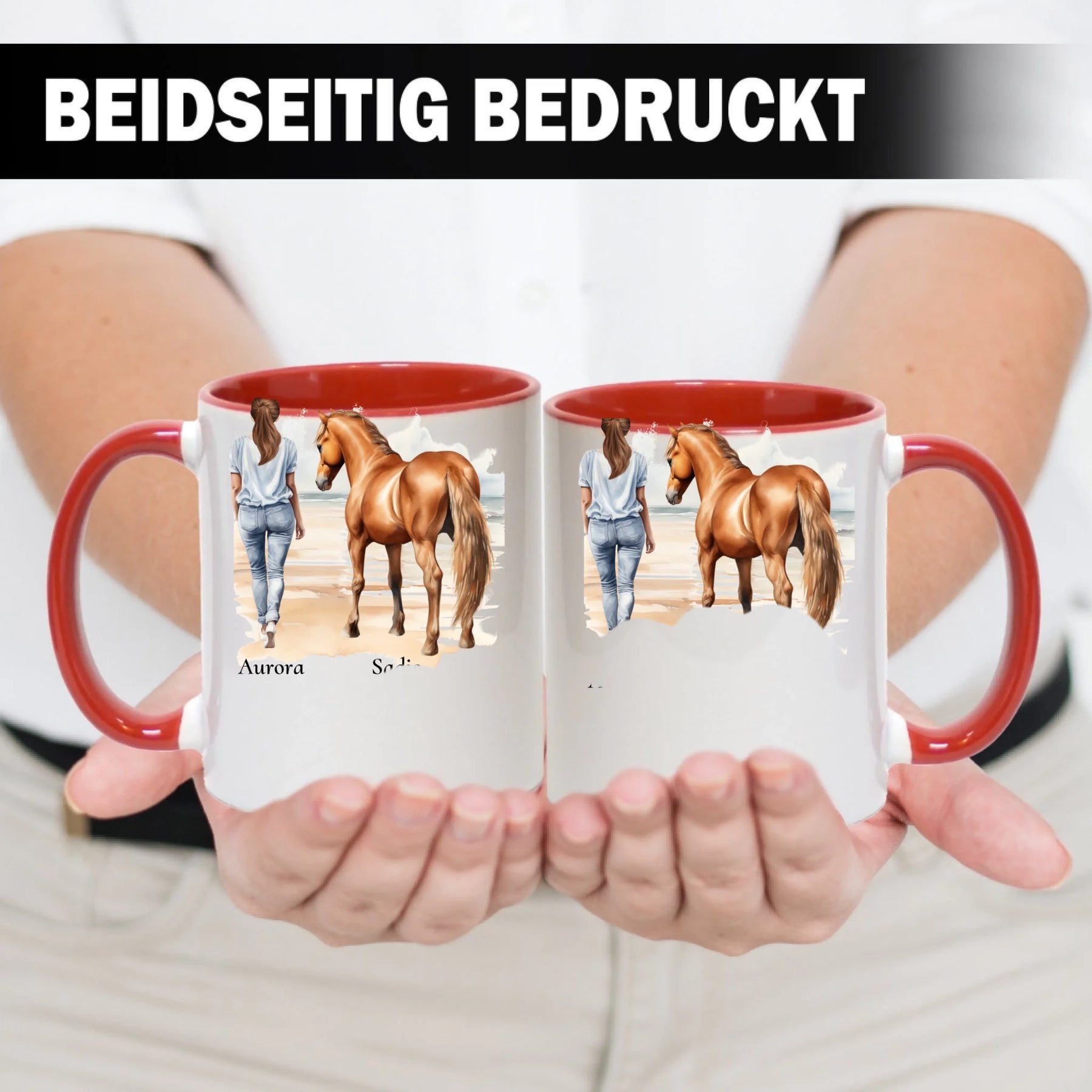 Personalisierte Tasse - Frau mit Pferd & Namen