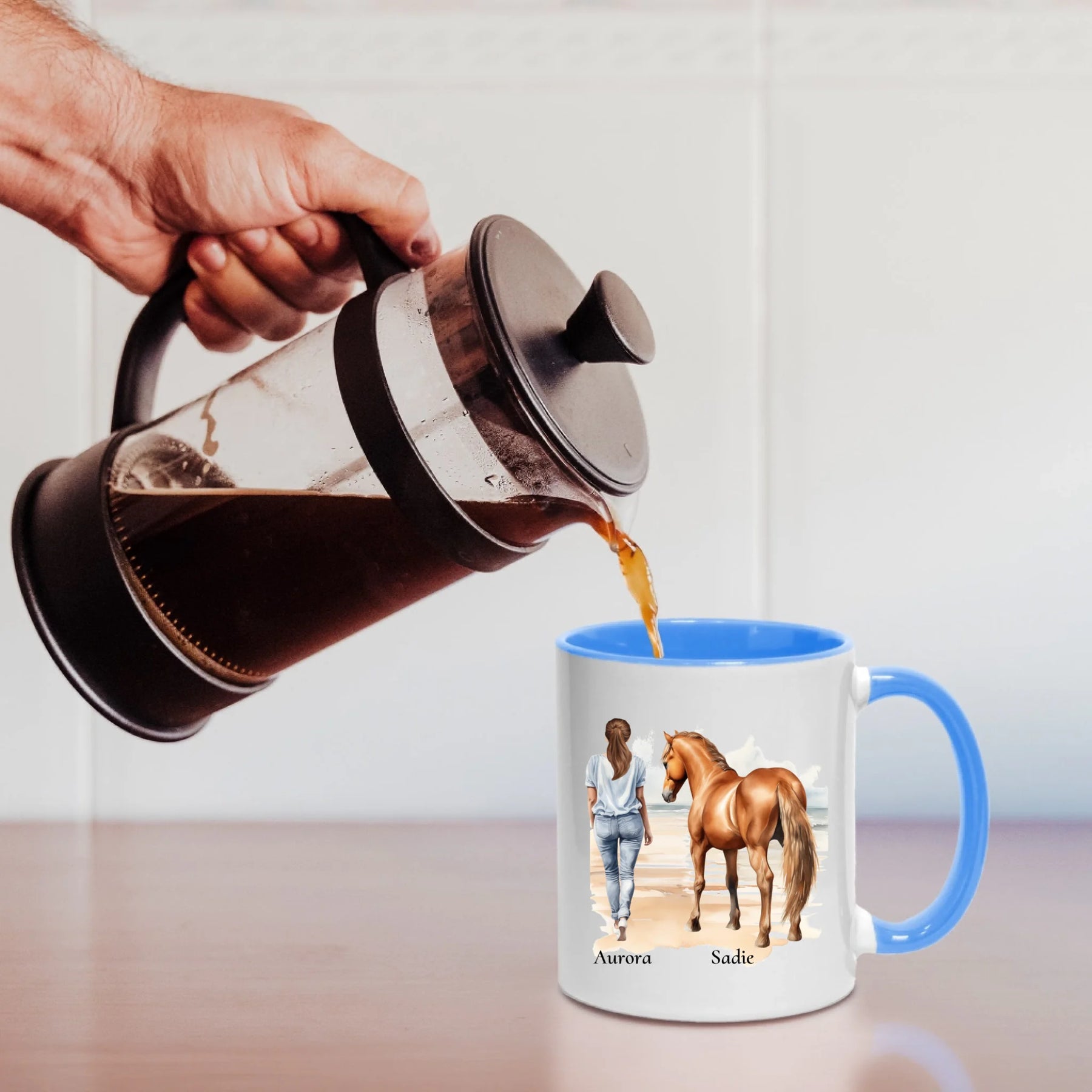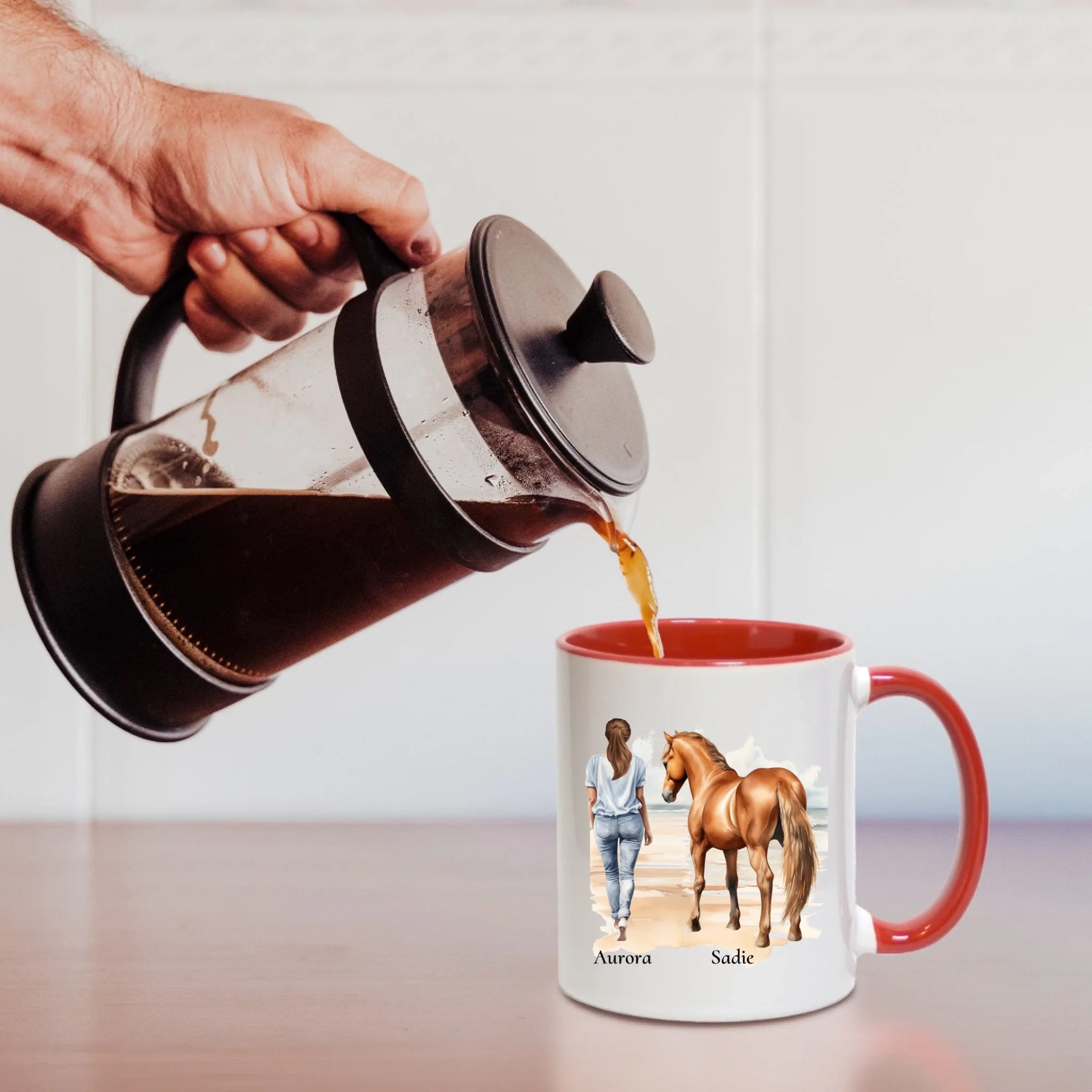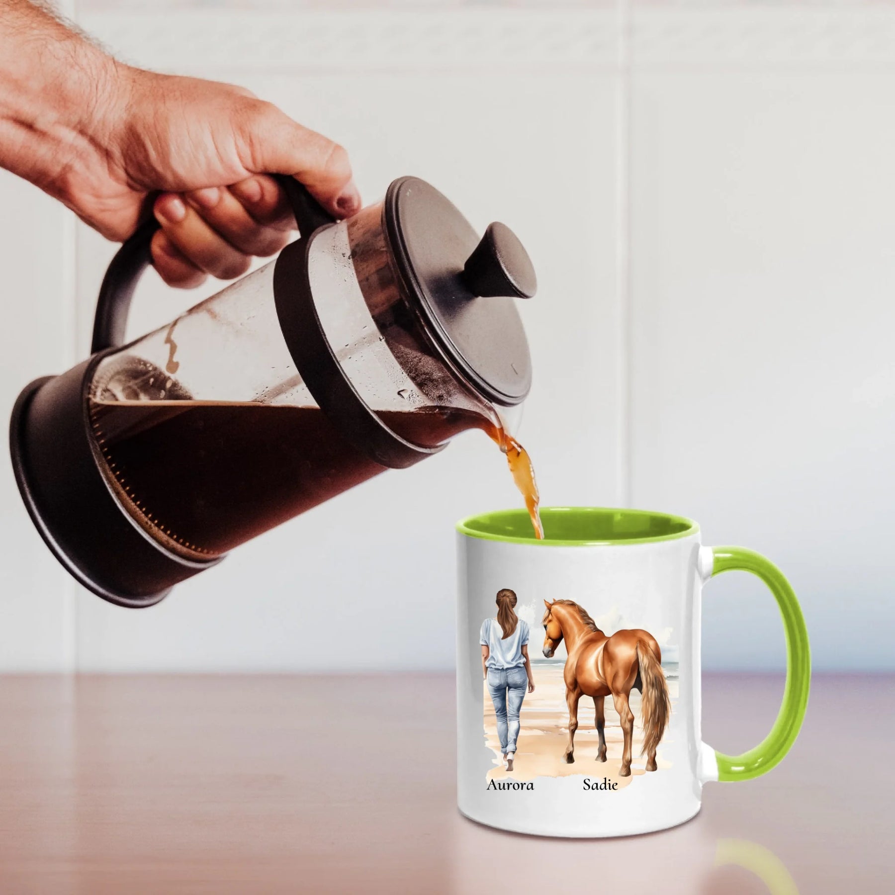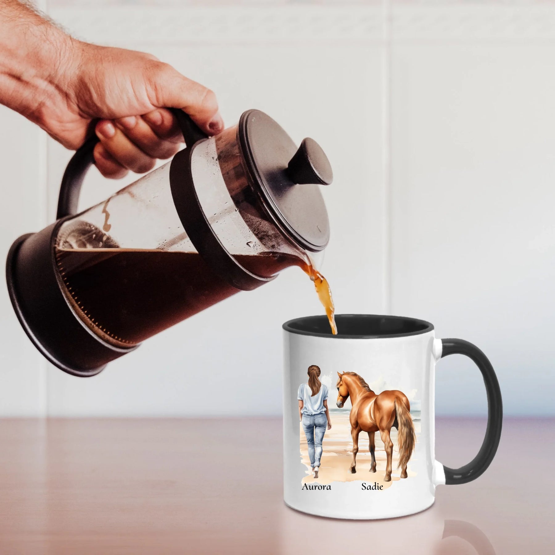 Personalisierte Tasse - Frau mit Pferd & Namen