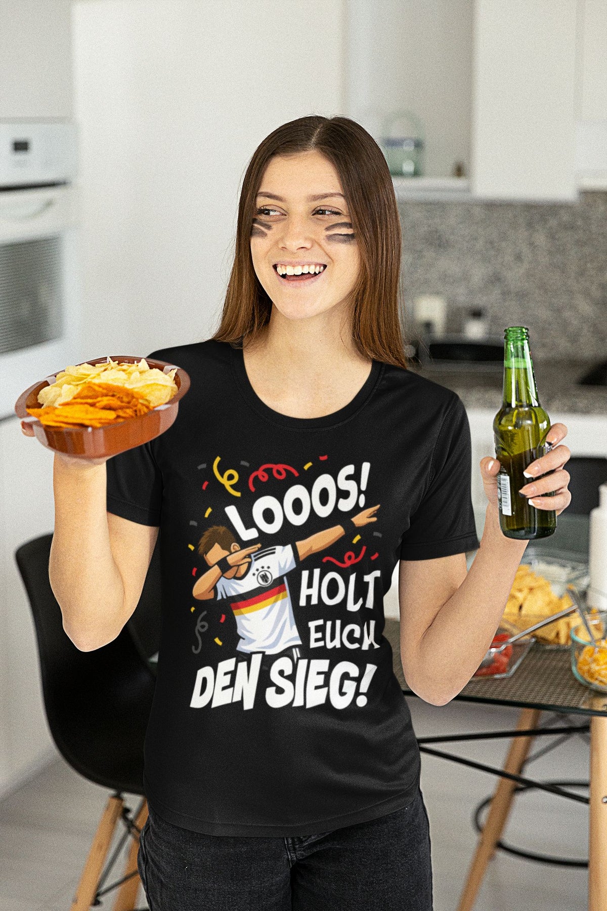 Du suchst das perfekte T-Shirt für die Fußball WM 2026, um deine Lieblingsmannschaft anzufeuern? Mit unserem Damen T-Shirt "Looos! Holt euch den Sieg!" bist du bestens ausgestattet und zeigst deine Begeisterung für Deutschland.