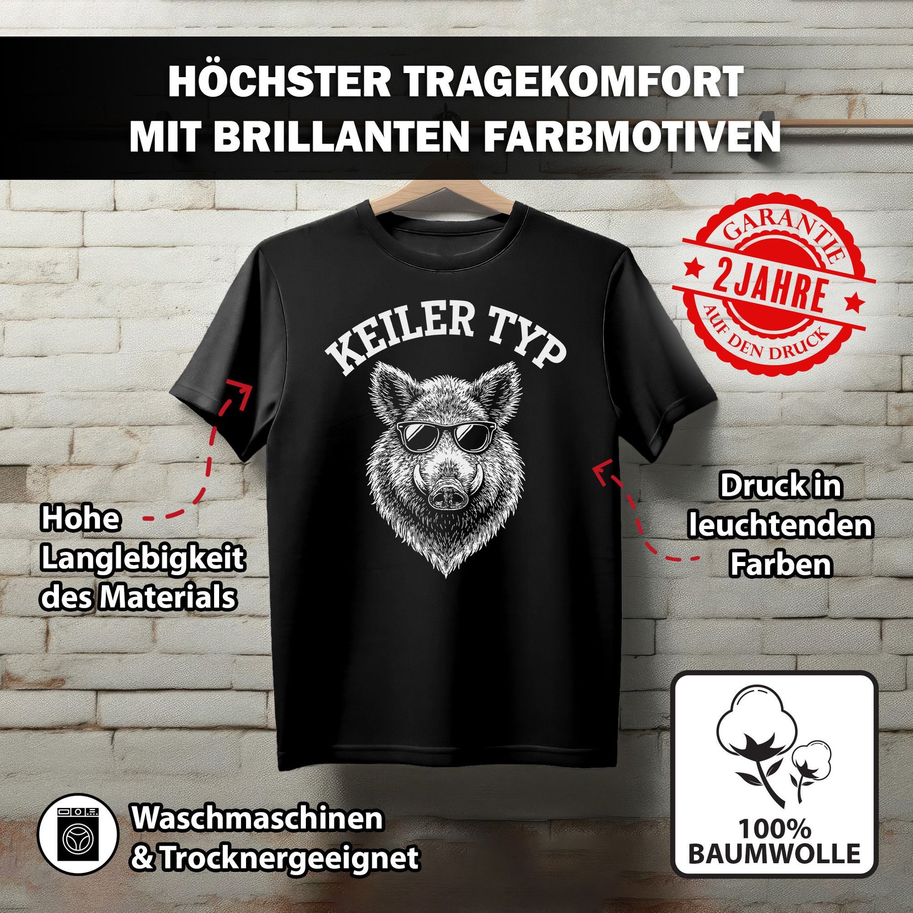 Du bist ein echter "Keiler Typ"? Dann ist dieses Herren T-Shirt mit Keiler Motiv genau das Richtige für dich! Zeige mit diesem coolen Wildschwein T-Shirt deine Leidenschaft für die Jagd, das Landleben oder einfach deinen humorvollen Charakter. Ideal für Jäger und Naturliebhaber, die ein markantes Statement setzen wollen.