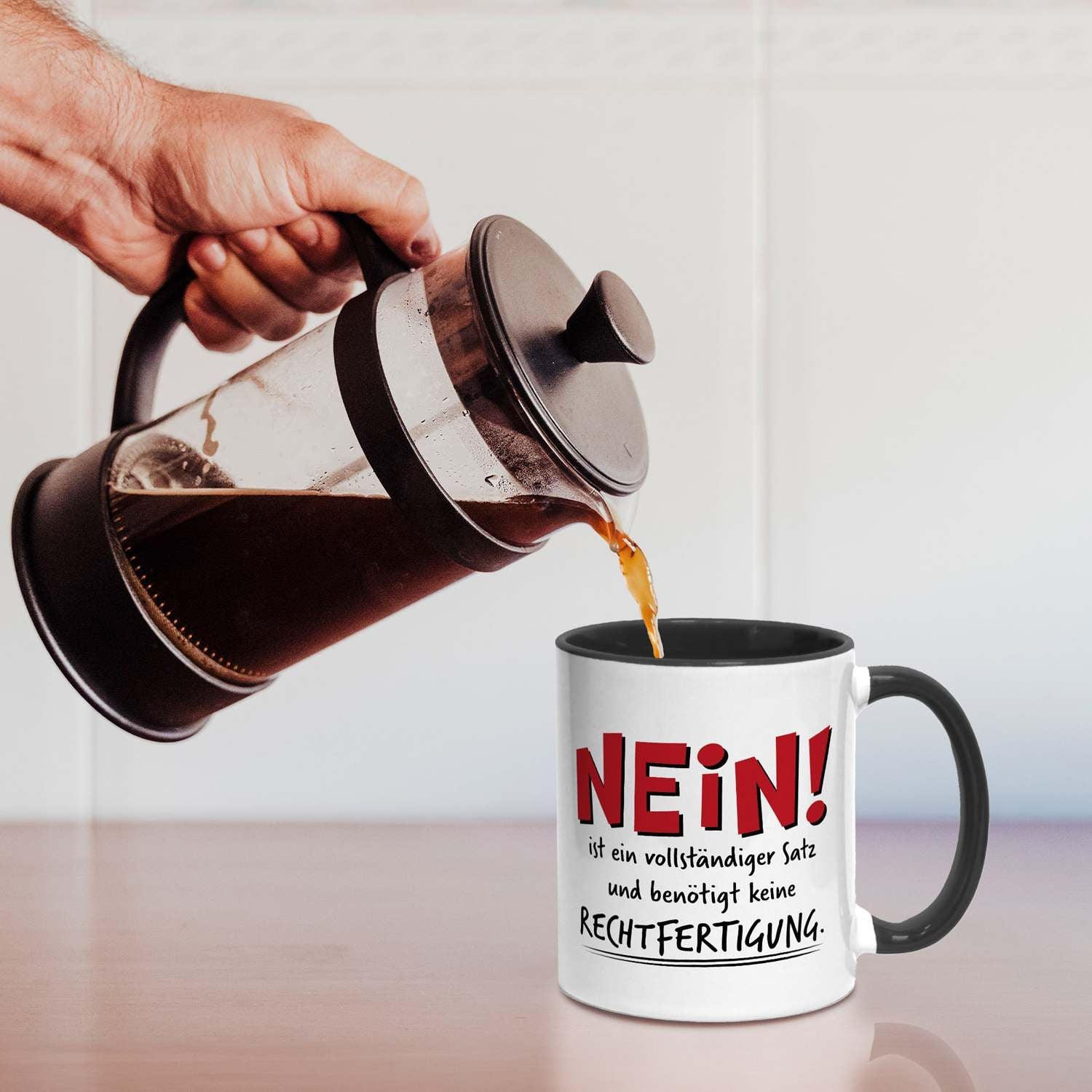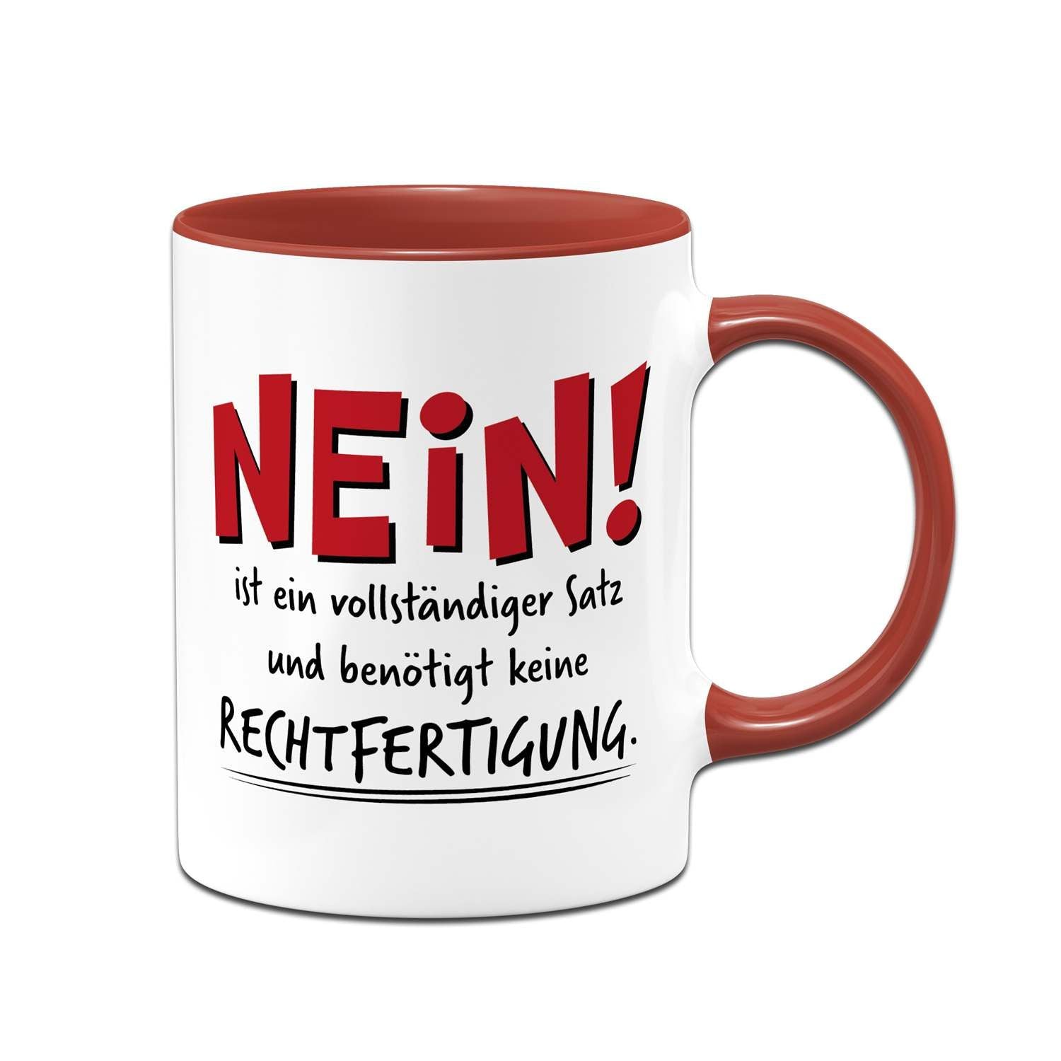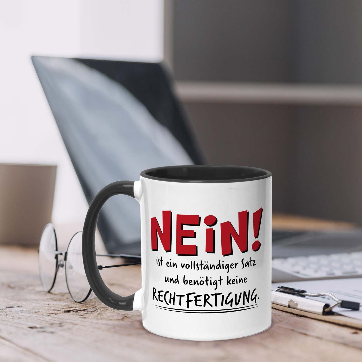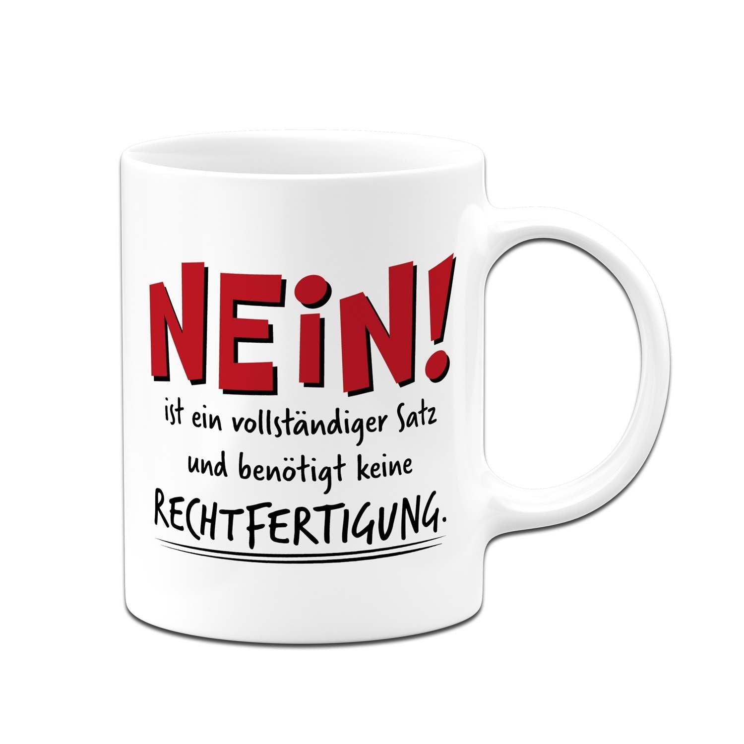 Manchmal braucht es keine langen Erklärungen, sondern einfach ein klares „NEIN!“. Diese Tasse mit Spruch ist dein perfekter Begleiter für alle Situationen, in denen du ohne Rechtfertigung deine Grenzen aufzeigen möchtest. Ideal für den Alltag im Büro oder zu Hause, bringt diese lustige Kaffeetasse eine ordentliche Portion Selbstbewusstsein an deinen Arbeitsplatz oder auf deinen Frühstückstisch.