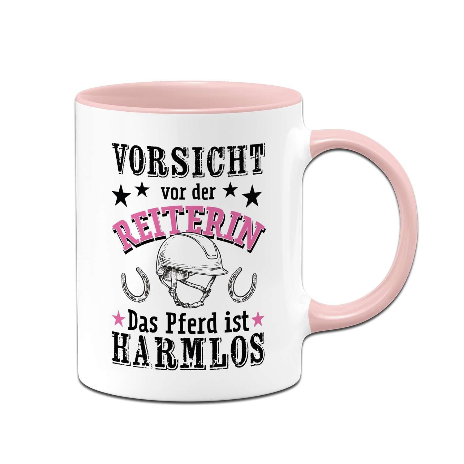 Du suchst ein originelles Geschenk für eine passionierte Reiterin oder Pferdeliebhaberin? Dann ist unsere humorvolle Tasse mit dem Spruch "Vorsicht vor der Reiterin - Pferd ist harmlos" genau das Richtige! Diese lustige Pferdetasse bringt garantiert jeden Morgen ein Schmunzeln ins Gesicht und ist der perfekte Begleiter für Kaffee, Tee oder Kakao.