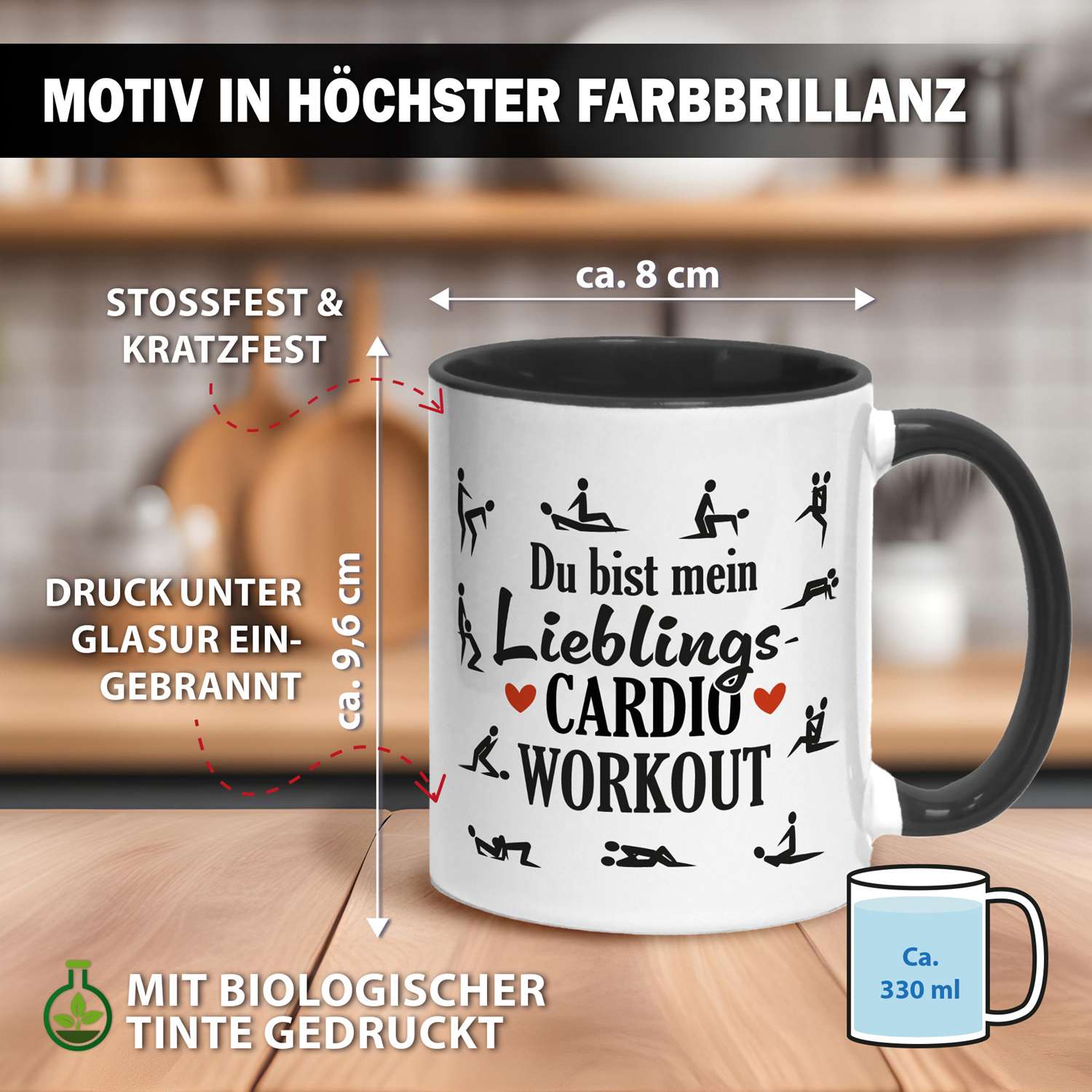 Diese Tasse mit Spruch „Du bist mein Lieblings Cardio Workout“ ist das perfekte Liebesgeschenk für alle, die Romantik gern mit Humor servieren. Flirty, charmant und ein kleines bisschen frech – ideal für Paare, die sich verstehen, ohne viele Worte (außer beim Kaffee).