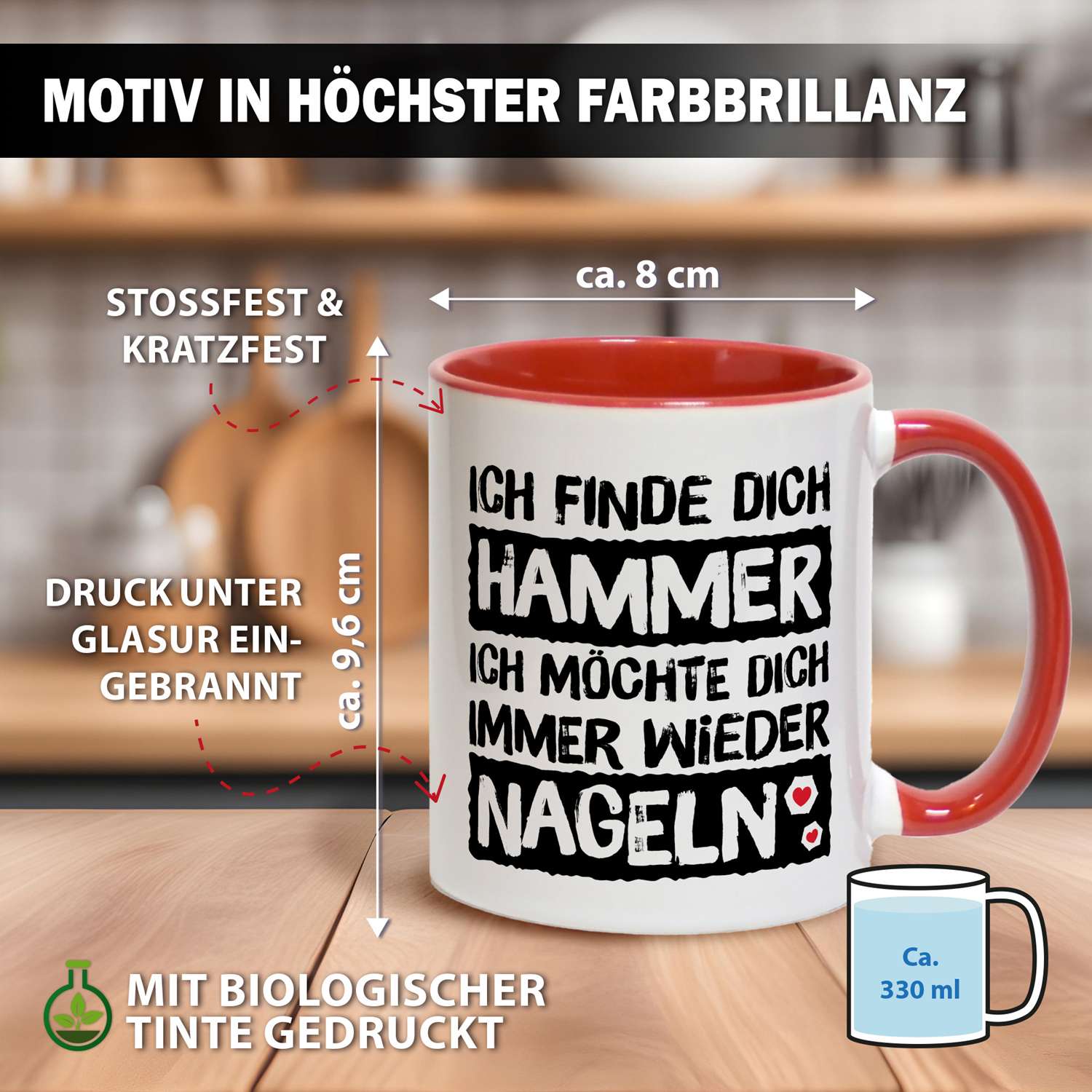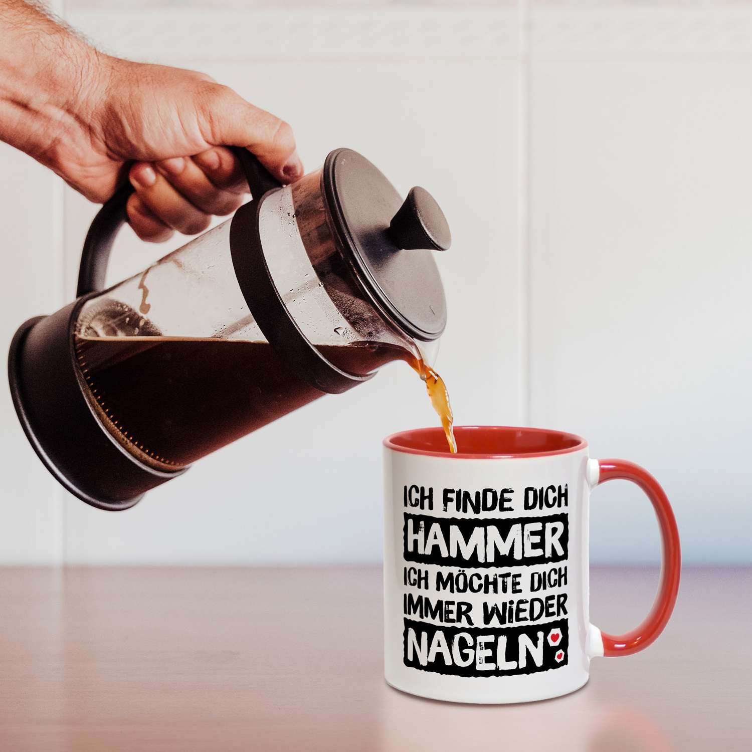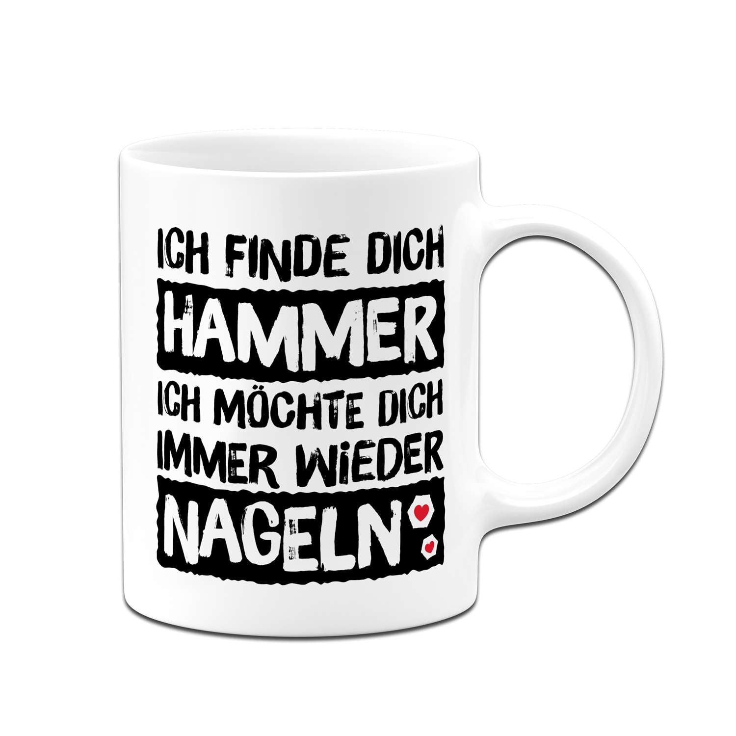 Diese Tasse mit Spruch „Ich finde Dich Hammer, ich möchte Dich immer wieder nageln“ ist eine freche Liebeserklärung mit Augenzwinkern – für deine Freundin, für euren Kaffee-Moment und für genau dieses „Hihi“-Grinsen am Frühstückstisch.