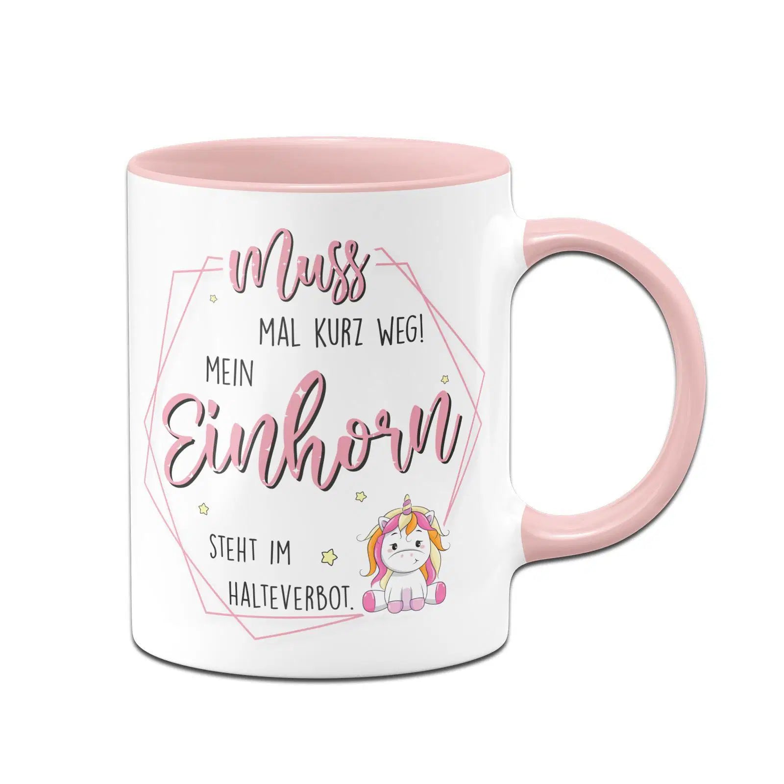 Tasse mit Spruch: Muss mal kurz weg! Mein Einhorn steht im Halteverbot. 🦄​
