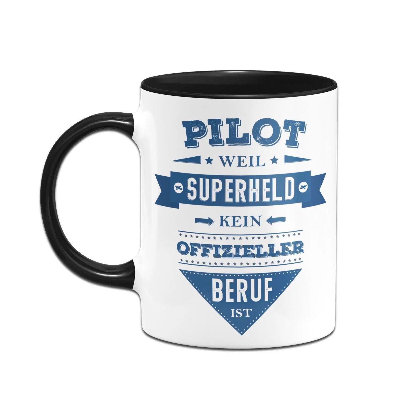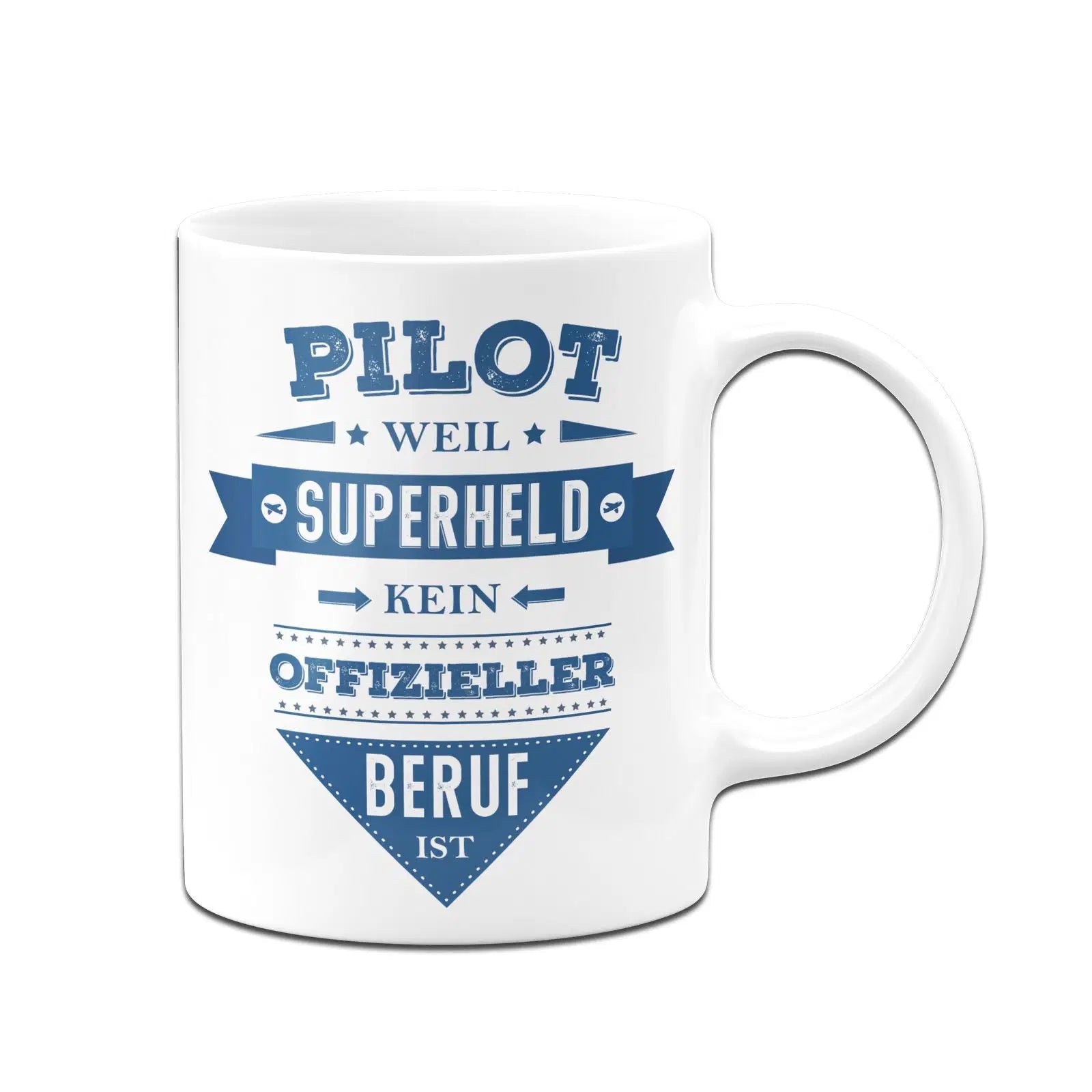 Piloten Tasse mit Spruch: Pilot, weil Superheld kein offizieller Beruf ist.