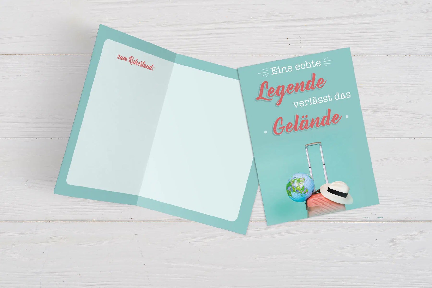Abschiedskarte mit Spruch: Eine echte Legende verlässt das Gelände 🌍🧳