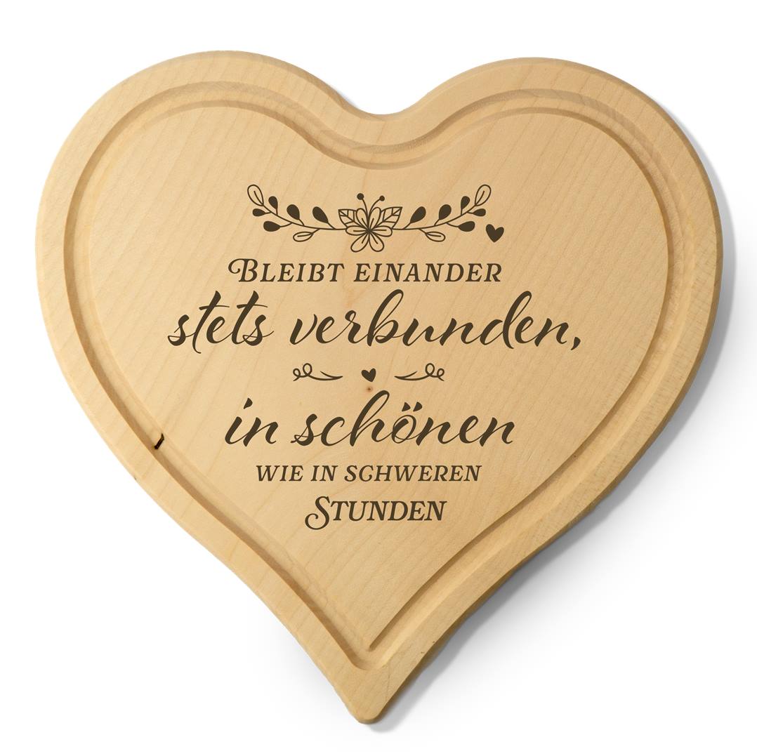 Schneidebrett - Bleibt einander stets verbunden, in schönen wie in schweren Stunden - Herzform