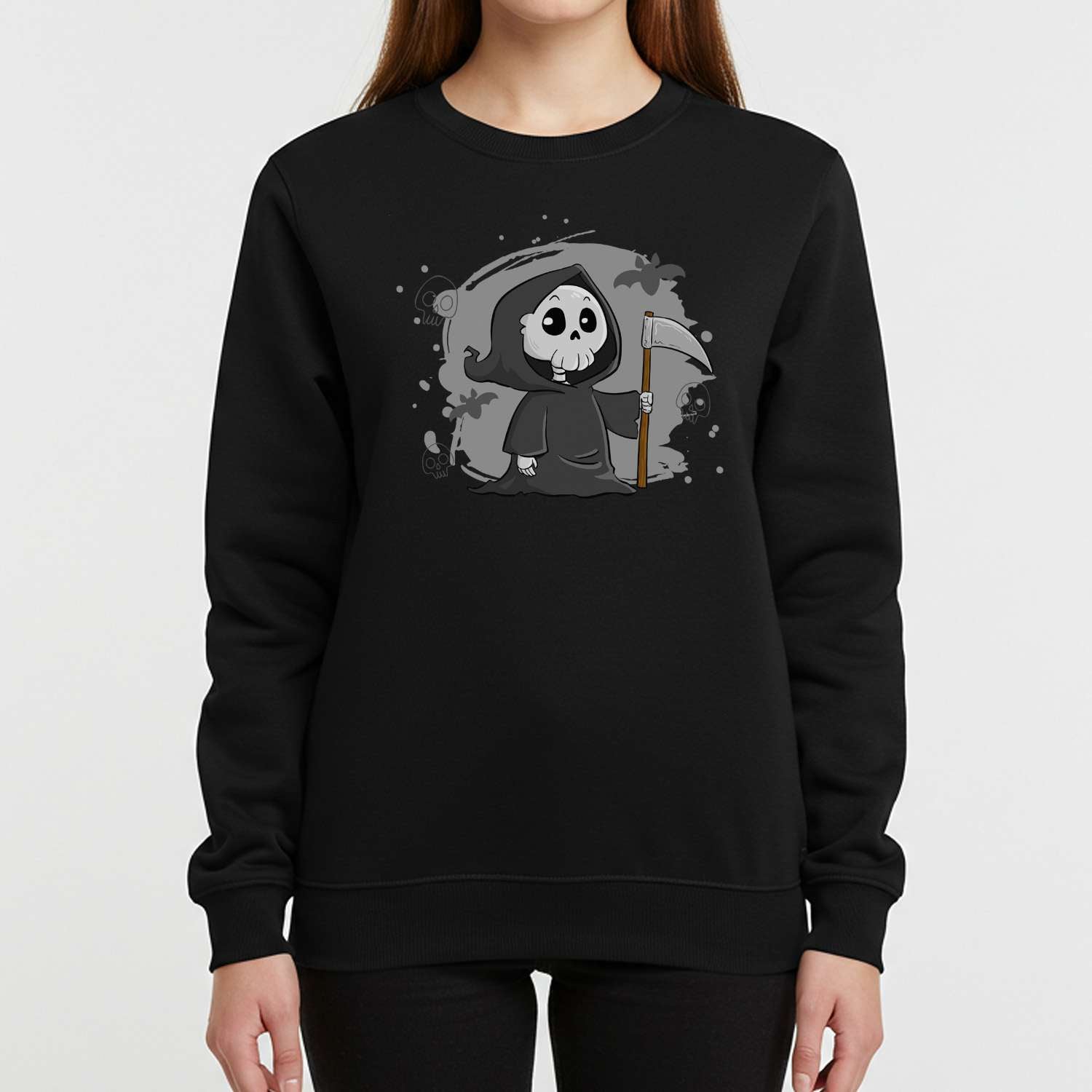 Dieser Sweater zeigt einen knuffigen kleinen Sensenmann – perfekt für alle, die schwarzen Humor lieben und ihre dunkle Seite mit einem Augenzwinkern zeigen wollen.