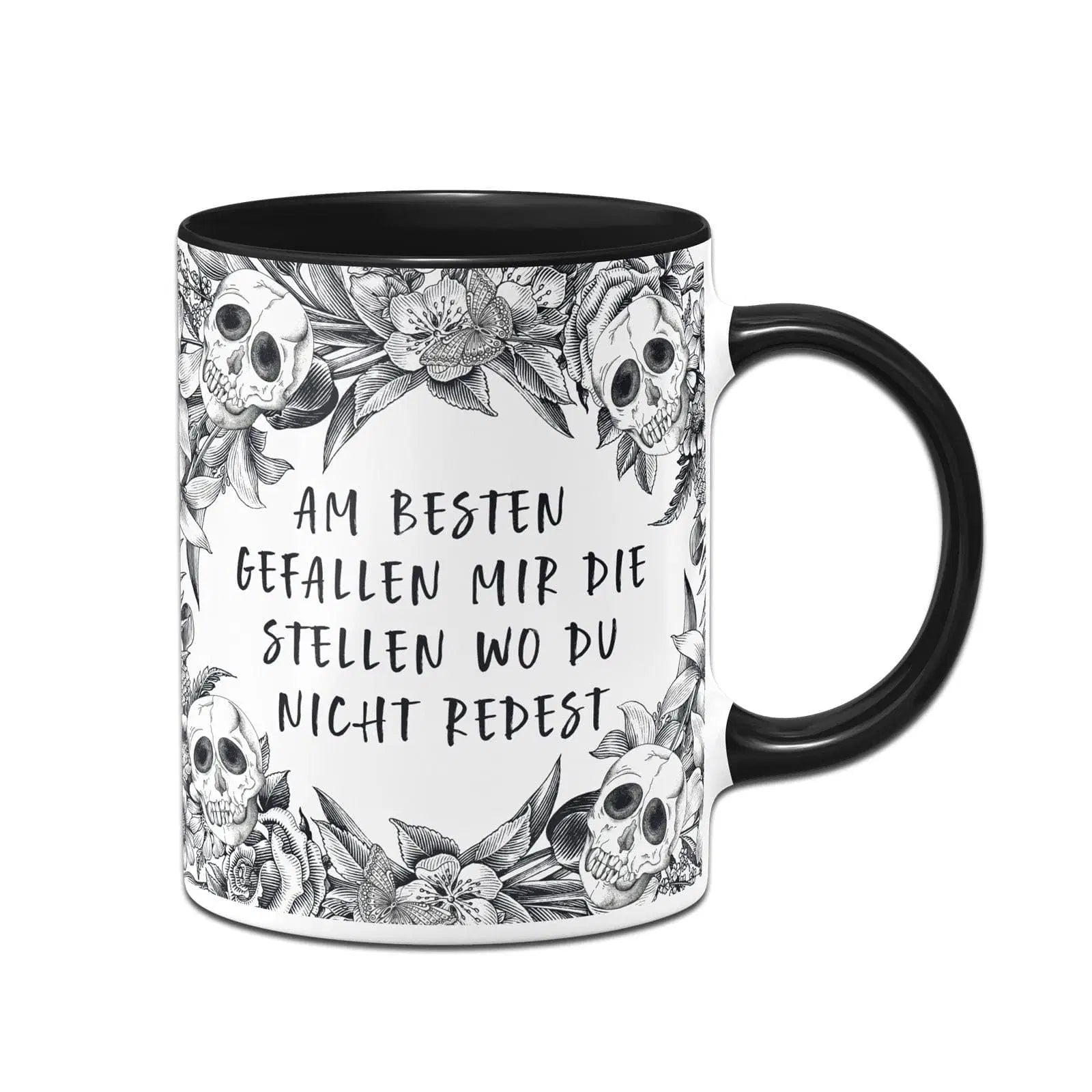 Skull Statement 💀 Totenkopf Tasse mit Spruch: Am besten gefallen mir die Stellen wo Du nicht redest (im Rundumdruck)