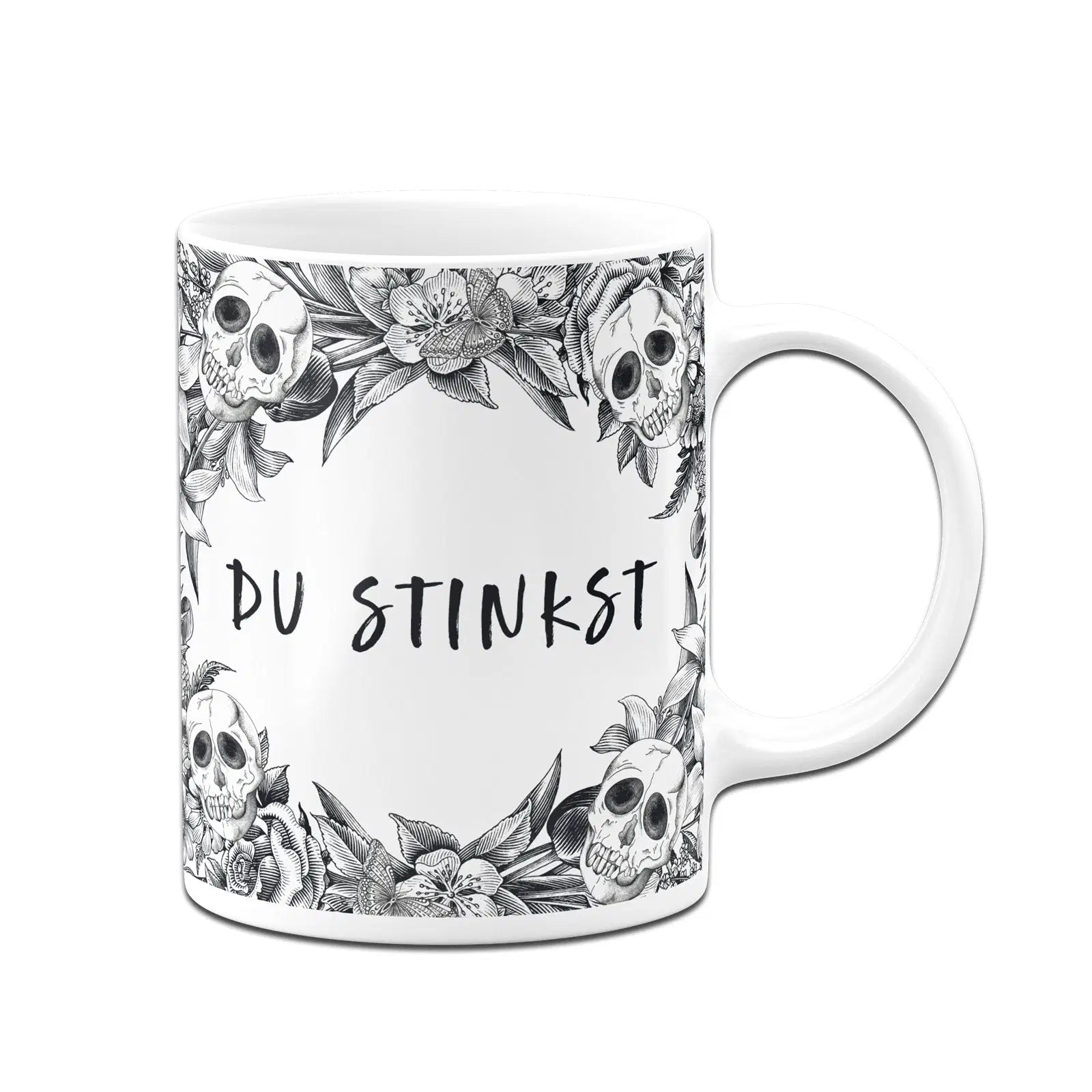 Skull Statement 💀 Totenkopf Tasse mit Spruch: Du stinkst (im Rundumdruck)