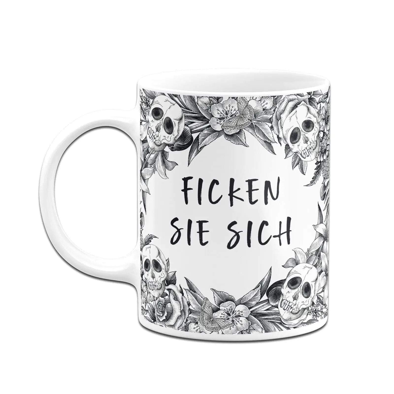 Skull Statement 💀 Totenkopf Tasse mit Spruch: Ficken Sie sich (im Rundumdruck)